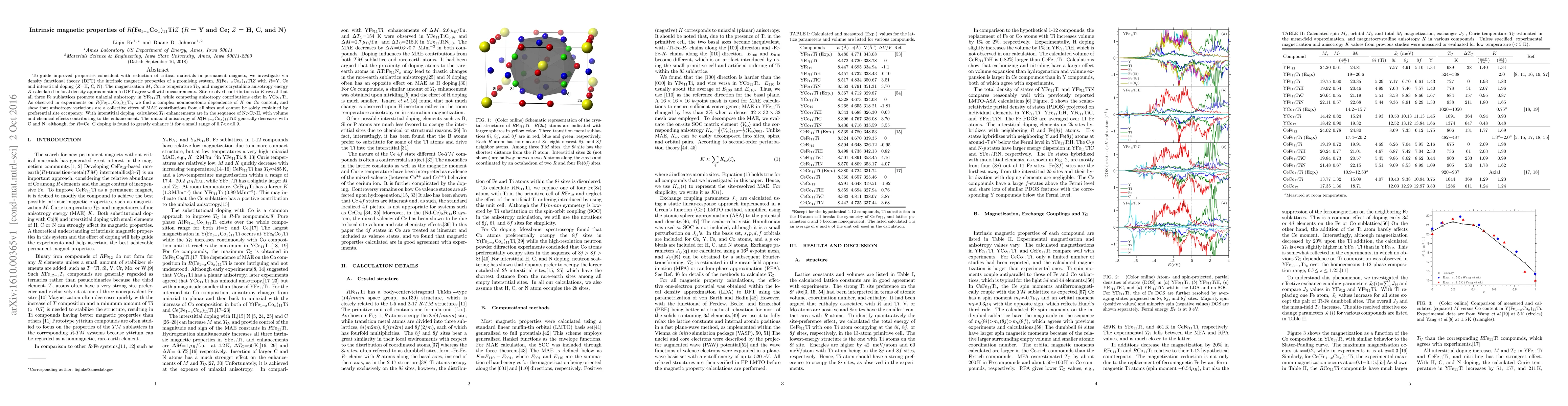 Researchers investigate the intrinsic magnetic properties of a promising system, $R$(Fe$_{1-x}$Co$_{x}$)$_{11}$Ti$Z$, using DFT to guide improved properties in permanent magnets. The study finds complex nonmonotonic dependencies and collective effects on anisotropy variations with Co content.