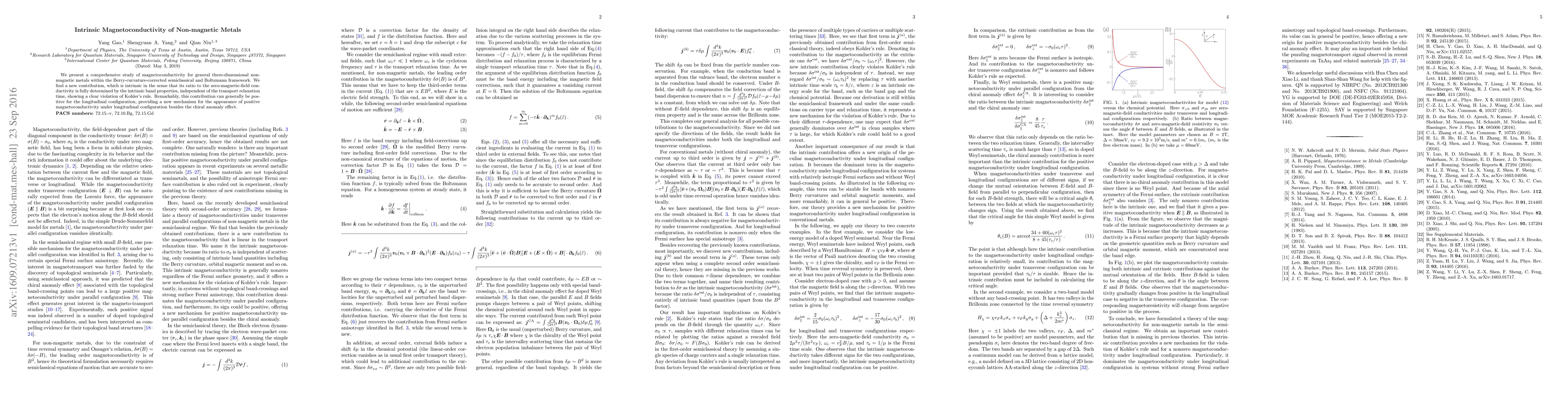 We present a comprehensive study of magnetoconductivity for general three-dimensional non-magnetic metals within the Berry-curvature-corrected semiclassical and Boltzmann framework. We find a new contribution, which is intrinsic in the sense that its ratio to the zero-magnetic-field conductivity is fully determined by the intrinsic band properties, independent of the transport relaxation time, showing a clear violation of Kohler's rule. Remarkably, this contribution can generally be positive for the longitudinal configuration, providing a new mechanism for the appearance of positive magnetoconductivity under longitudinal configuration besides the chiral anomaly effect.