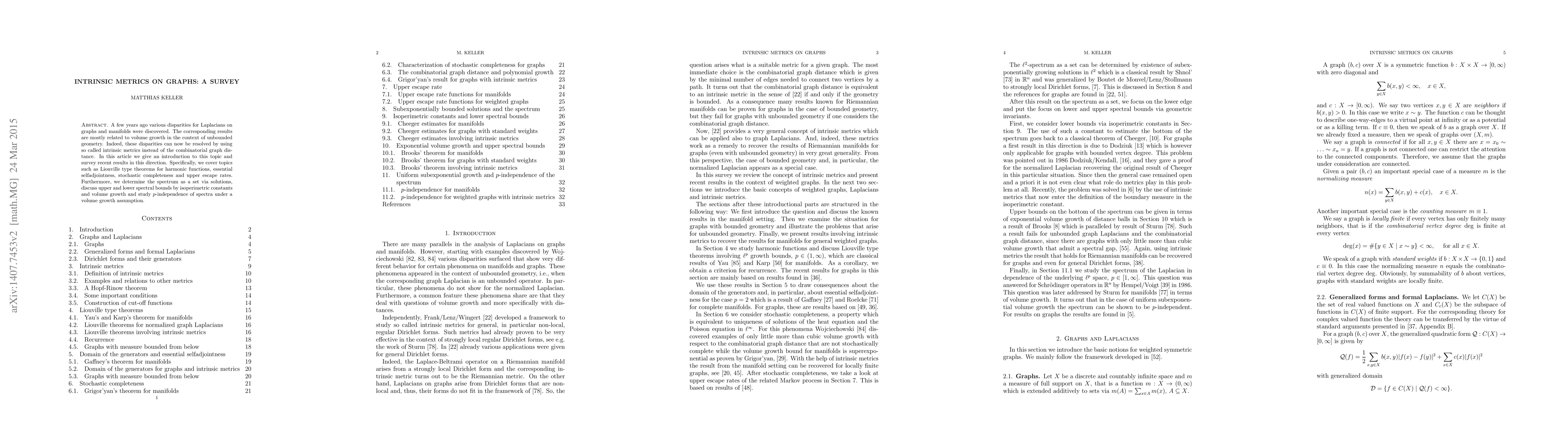 A few years ago various disparities for Laplacians on graphs and manifolds were discovered. The corresponding results are mostly related to volume growth in the context of unbounded geometry. Indeed, these disparities can now be resolved by using so called intrinsic metrics instead of the combinatorial graph distance. In this article we give an introduction to this topic and survey recent results in this direction. Specifically, we cover topics such as Liouville type theorems for harmonic functions, essential selfadjointness, stochastic completeness and upper escape rates. Furthermore, we determine the spectrum as a set via solutions, discuss upper and lower spectral bounds by isoperimetric constants and volume growth and study $p$-independence of spectra under a volume growth assumption.