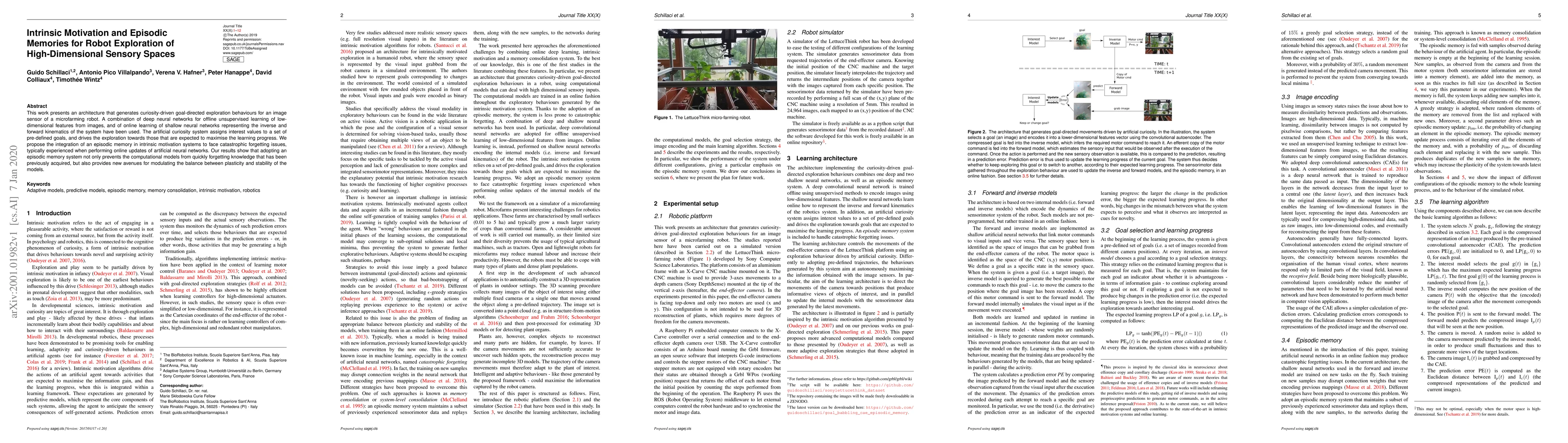 A robot exploration system uses intrinsic motivation to drive goal-directed behavior through a combination of deep neural networks and episodic memory, preventing catastrophic forgetting and optimizing balance between plasticity and stability.