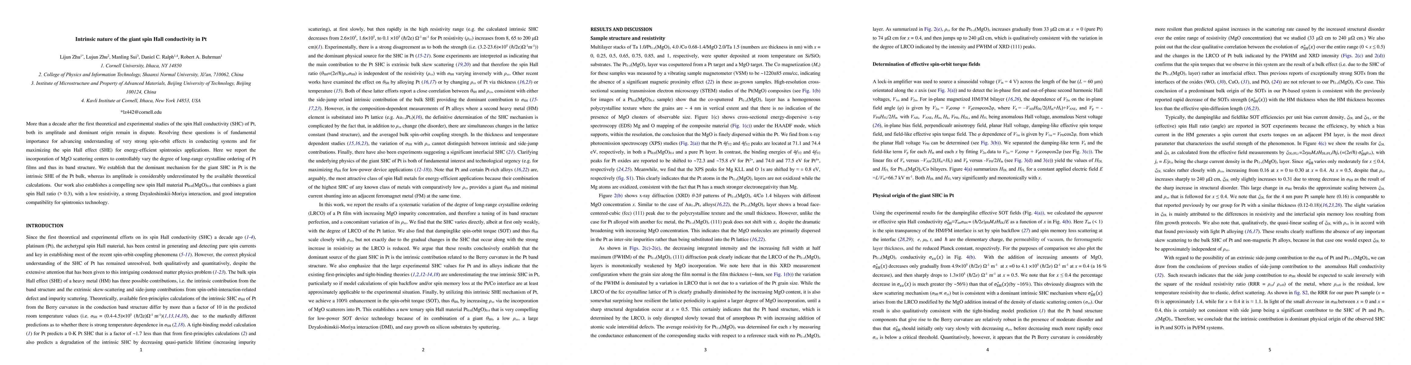 This paper experimentally confirms that the intrinsic giant spin Hall conductivity in platinum (Pt) is primarily due to Berry curvature contributions and decreases with shorter carrier lifetimes. The study finds the intrinsic spin Hall conductivity in clean Pt to be significantly greater than theoretical predictions, highlighting a potential material for advanced spintronics applications.