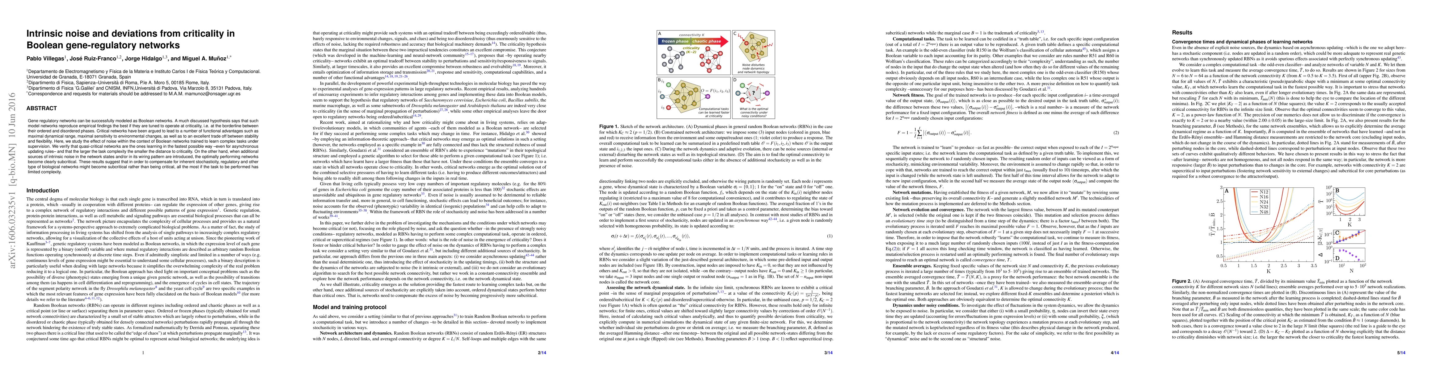 Gene regulatory networks can be successfully modeled as Boolean networks. A much discussed hypothesis says that such model networks reproduce empirical findings the best if they are tuned to operate at criticality, i.e. at the borderline between their ordered and disordered phases. Critical networks have been argued to lead to a number of functional advantages such as maximal dynamical range, maximal sensitivity to environmental changes, as well as to an excellent trade off between stability and flexibility. Here, we study the effect of noise within the context of Boolean networks trained to learn complex tasks under supervision. We verify that quasi-critical networks are the ones learning in the fastest possible way --even for asynchronous updating rules-- and that the larger the task complexity the smaller the distance to criticality. On the other hand, when additional sources of intrinsic noise in the network states and/or in its wiring pattern are introduced, the optimally performing networks become clearly subcritical. These results suggest that in order to compensate for inherent stochasticity, regulatory and other type of biological networks might become subcritical rather than being critical, all the most if the task to be performed has limited complexity.