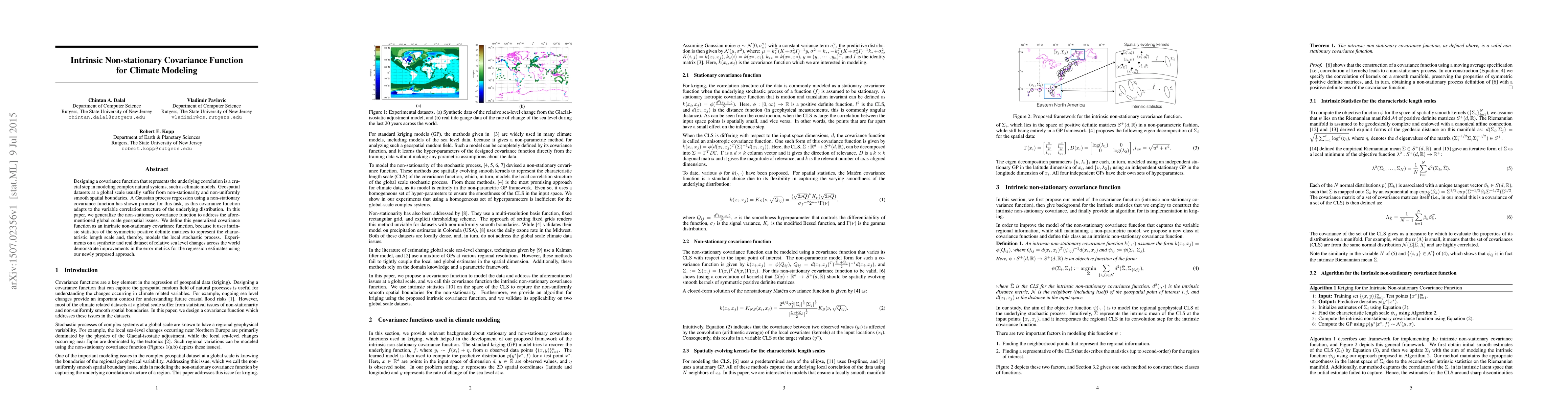 This paper proposes an intrinsic non-stationary covariance function for Gaussian process regression to model complex natural systems like climate models, addressing non-stationarity and non-uniform spatial boundaries. The approach shows improved regression estimates for relative sea level changes, as demonstrated by experiments on both synthetic and real datasets.