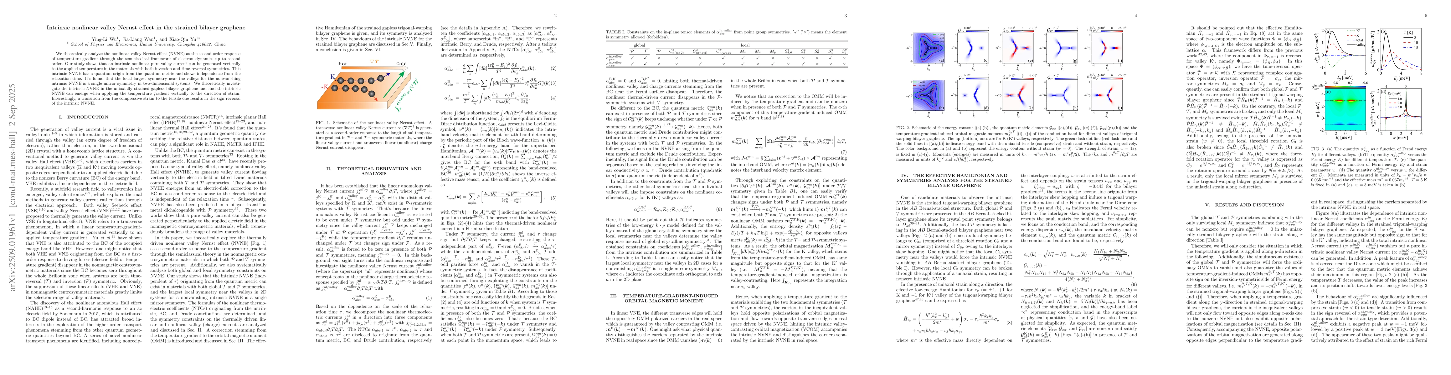 We theoretically analyze the nonlinear valley Nernst effect (NVNE) as the second-order response of temperature gradient through the semiclassical framework of electron dynamics up to second order. Our study shows that an intrinsic nonlinear pure valley current can be generated vertically to the applied temperature in the materials with both inversion and time-reversal symmetries. This intrinsic NVNE has a quantum origin from the quantum metric and shows independence from the relaxation time. It's found that the local largest symmetry near the valleys for the nonvanishing intrinsic NVNE is a single mirror symmetry in two-dimensional systems. We theoretically investigate the intrinsic NVNE in the uniaxially strained gapless bilayer graphene and find the intrinsic NVNE can emerge when applying the temperature gradient vertically to the direction of strain. Interestingly, a transition from the compressive strain to the tensile one results in the sign reversal of the intrinsic NVNE.