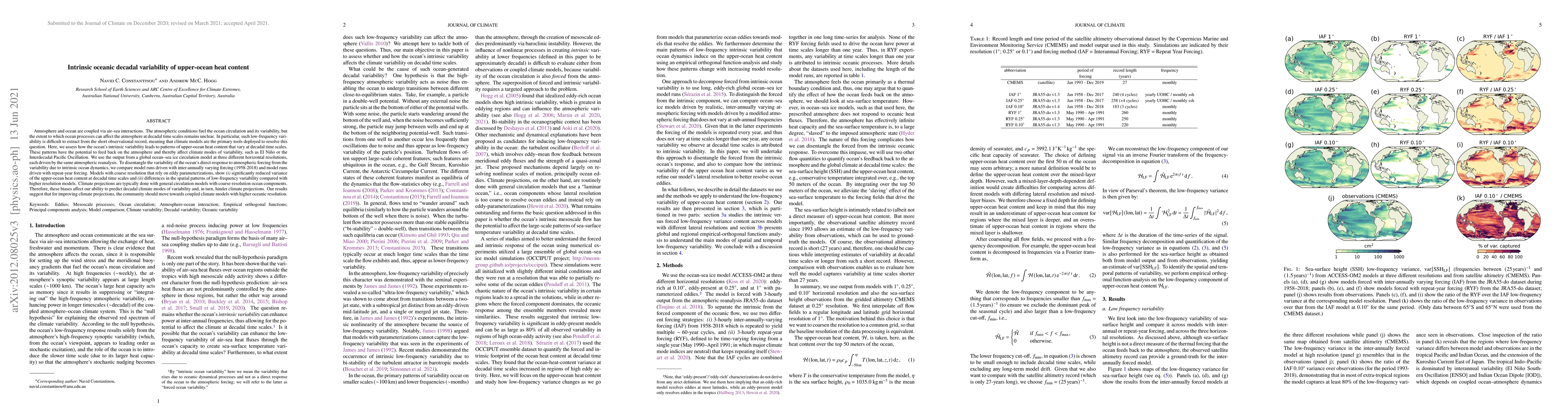 This paper investigates the intrinsic oceanic decadal variability in upper-ocean heat content using a global ocean-sea ice model. It finds that coarse-resolution models show reduced variance and different spatial patterns of variability compared to higher resolution models, highlighting the need for higher oceanic resolution in coupled climate models to improve decadal climate projections.