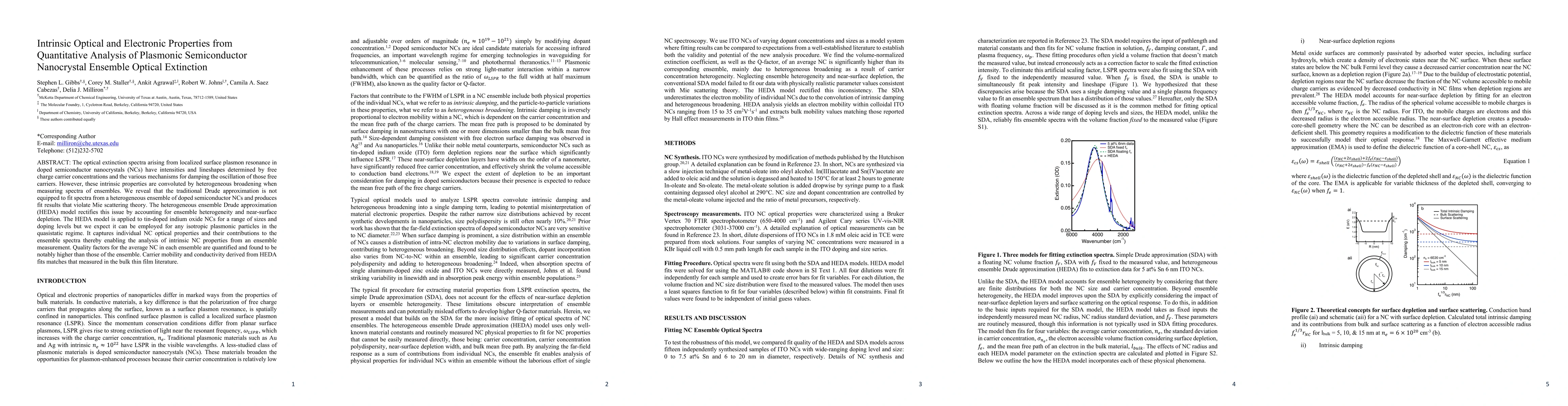 This paper introduces a novel model, the Heterogeneous Ensemble Drude Approximation (HEDA), to accurately analyze optical extinction spectra from doped semiconductor nanocrystal ensembles, revealing intrinsic optical and electronic properties. The HEDA model corrects for ensemble heterogeneity and surface depletion, providing insights into individual nanocrystal properties and validating carrier mobility and conductivity measurements.