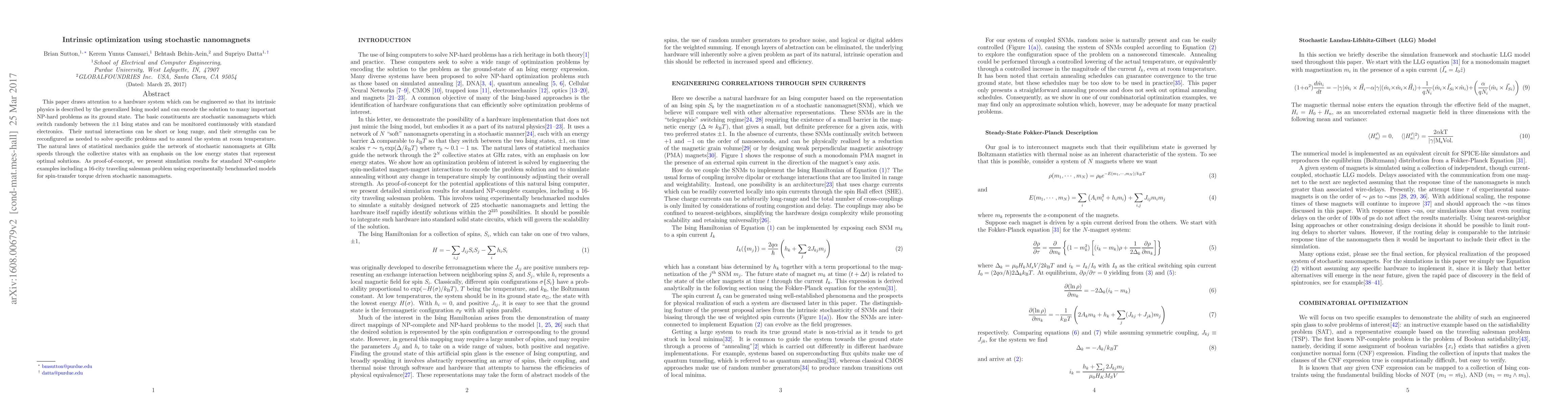This paper proposes a hardware system based on stochastic nanomagnets that leverages the generalized Ising model to solve NP-hard problems by encoding their solutions in the ground state. Simulation results demonstrate its potential to efficiently find optimal solutions for NP-complete problems, including a 16-city traveling salesman problem.