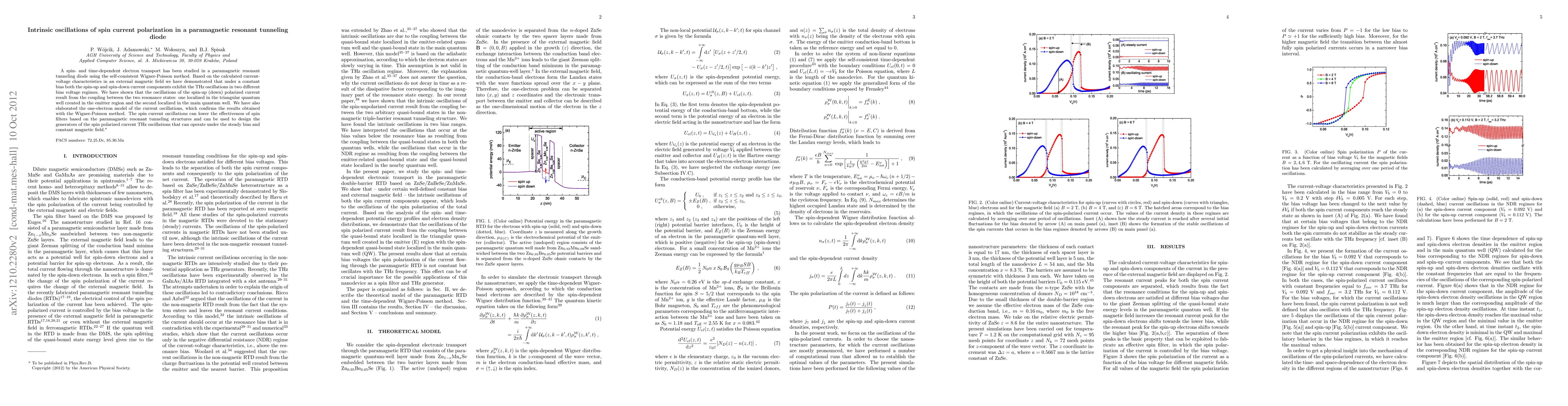 This paper investigates the intrinsic oscillations of spin current polarization in a paramagnetic resonant tunneling diode, revealing THz oscillations in both spin-up and spin-down current components. The oscillations arise from the coupling between localized resonance states, and can be utilized for designing spin-polarized current THz oscillation generators.