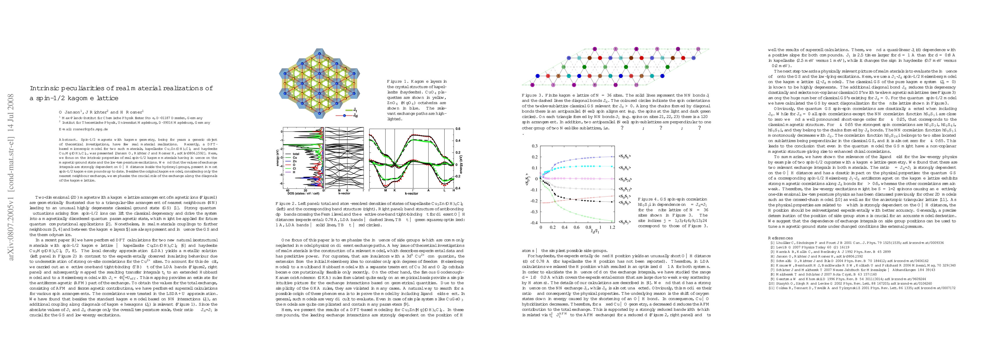Spin-1/2 magnets with kagome geometry, being for years a generic object of theoretical investigations, have few real material realizations. Recently, a DFT-based microscopic model for two such materials, kapellasite Cu3Zn(OH)6Cl2 and haydeeite Cu3Mg(OH)6Cl2, was presented [O. Janson, J. Richter and H. Rosner, arXiv:0806.1592]. Here, we focus on the intrinsic properties of real spin-1/2 kagome materials having influence on the magnetic ground state and the low-temperature excitations. We find that the values of exchange integrals are strongly dependent on O--H distance inside the hydroxyl groups, present in most spin-1/2 kagome compounds up to date. Besides the original kagome model, considering only the nearest neighbour exchange, we emphasize the crucial role of the exchange along the diagonals of the kagome lattice.