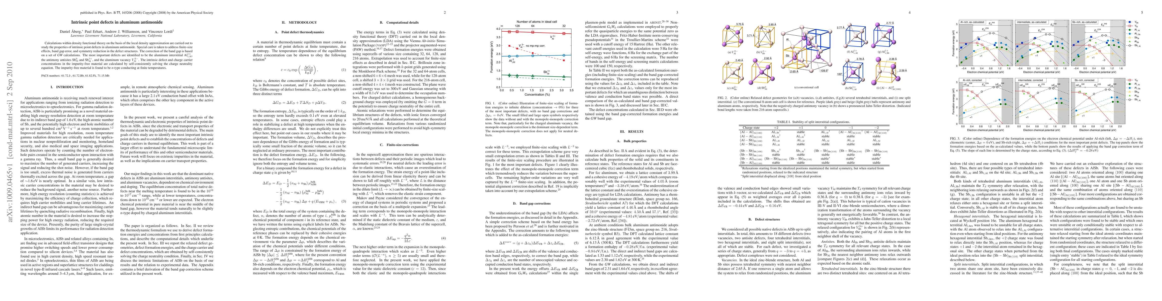 This study uses density functional theory to investigate intrinsic point defects in aluminum antimonide, identifying key defects such as aluminum interstitials, antimony antisites, and aluminum vacancies. The research corrects for band gap errors and finds the material to be n-type conducting at finite temperatures.