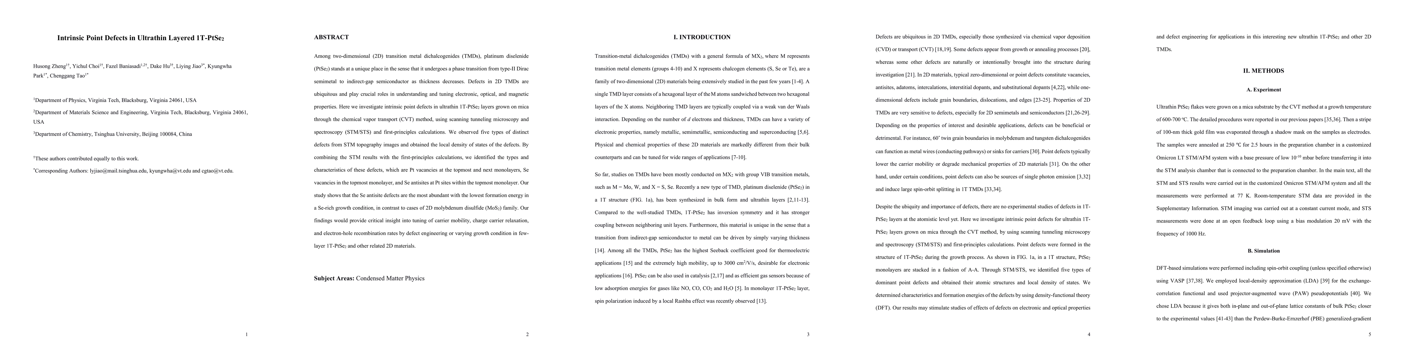 This study investigates intrinsic point defects in ultrathin 1T-PtSe2 layers using STM/STS and first-principles calculations, identifying Pt and Se vacancies, and Se antisites. Se antisite defects are most prevalent and abundant, offering insights into tuning electronic properties in 1T-PtSe2 and related 2D materials.