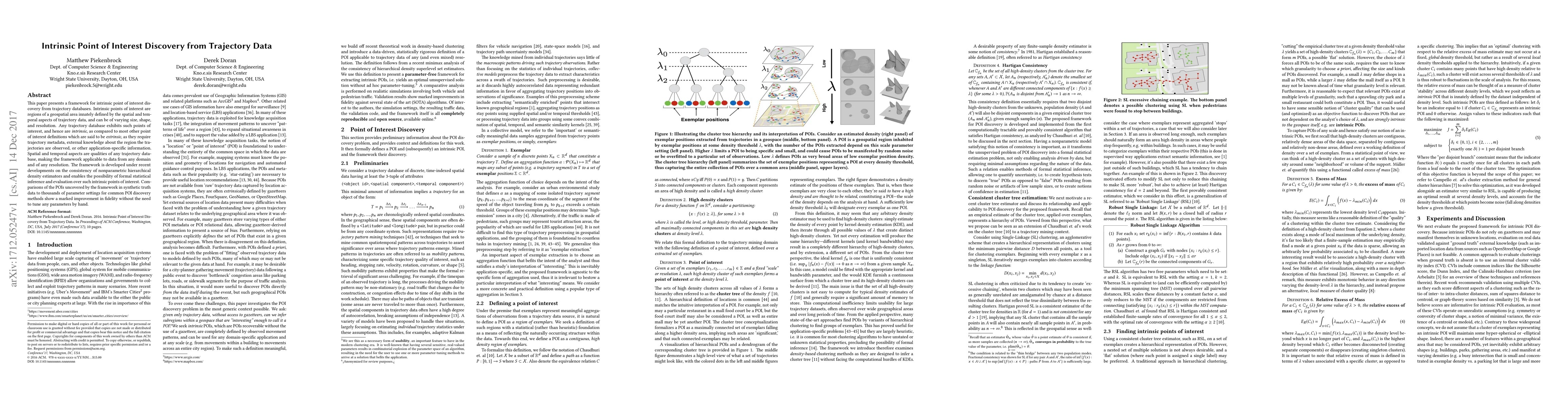 This paper presents a framework for intrinsic point of interest discovery from trajectory databases. Intrinsic points of interest are regions of a geospatial area innately defined by the spatial and temporal aspects of trajectory data, and can be of varying size, shape, and resolution. Any trajectory database exhibits such points of interest, and hence are intrinsic, as compared to most other point of interest definitions which are said to be extrinsic, as they require trajectory metadata, external knowledge about the region the trajectories are observed, or other application-specific information. Spatial and temporal aspects are qualities of any trajectory database, making the framework applicable to data from any domain and of any resolution. The framework is developed under recent developments on the consistency of nonparametric hierarchical density estimators and enables the possibility of formal statistical inference and evaluation over such intrinsic points of interest. Comparisons of the POIs uncovered by the framework in synthetic truth data to thousands of parameter settings for common POI discovery methods show a marked improvement in fidelity without the need to tune any parameters by hand.