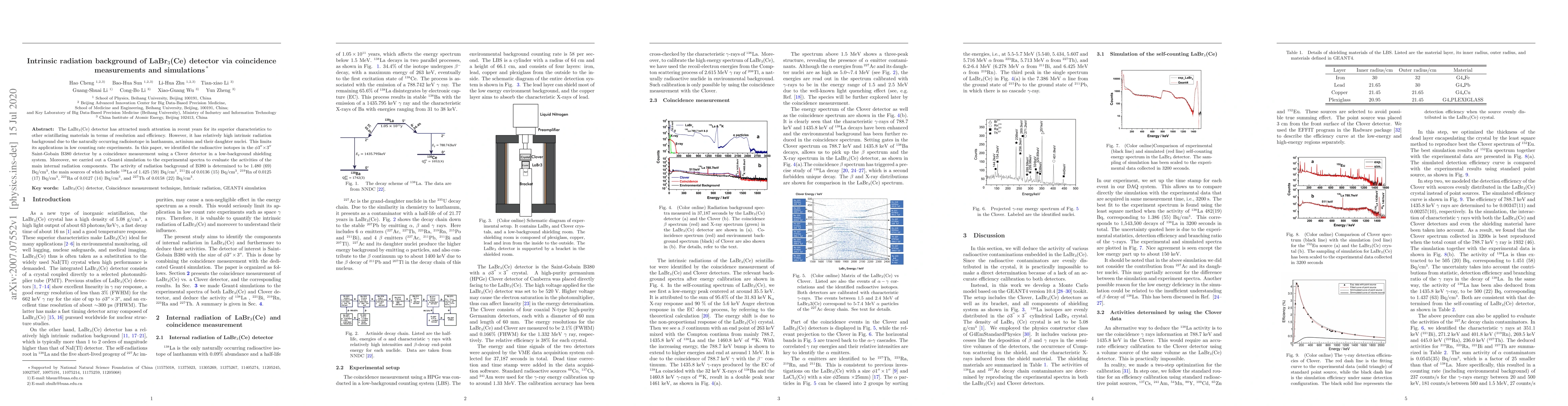 Researchers measured and simulated the intrinsic radiation background of LaBr3(Ce) detectors, identifying sources such as 138La, 211Bi, and 227Th, to improve applications in low-counting rate experiments.