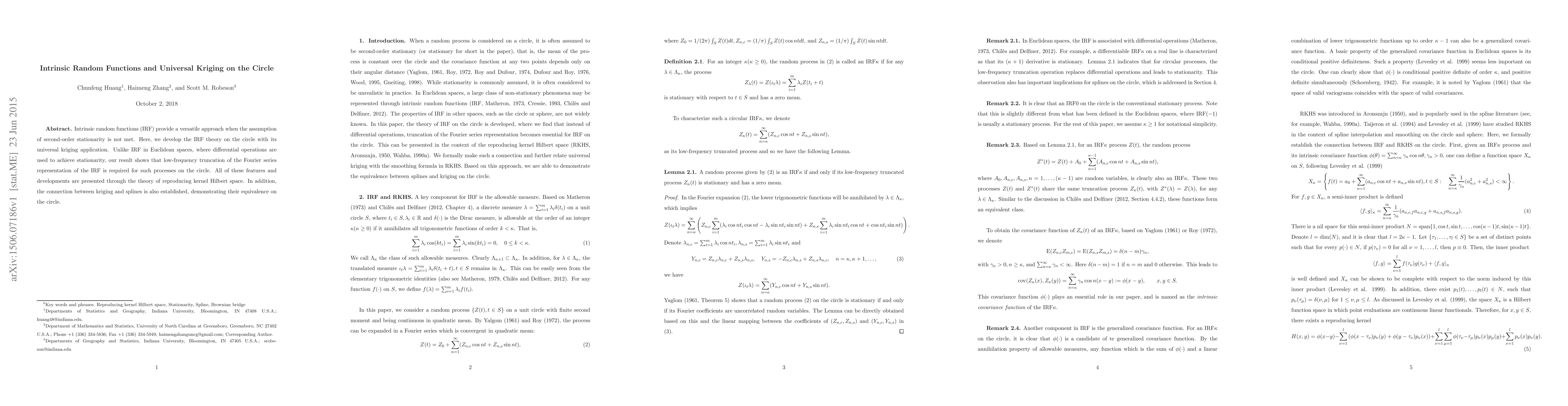 Researchers developed a new approach to modeling non-stationary processes on the circle using intrinsic random functions, which can predict spatial patterns without assuming stationarity.