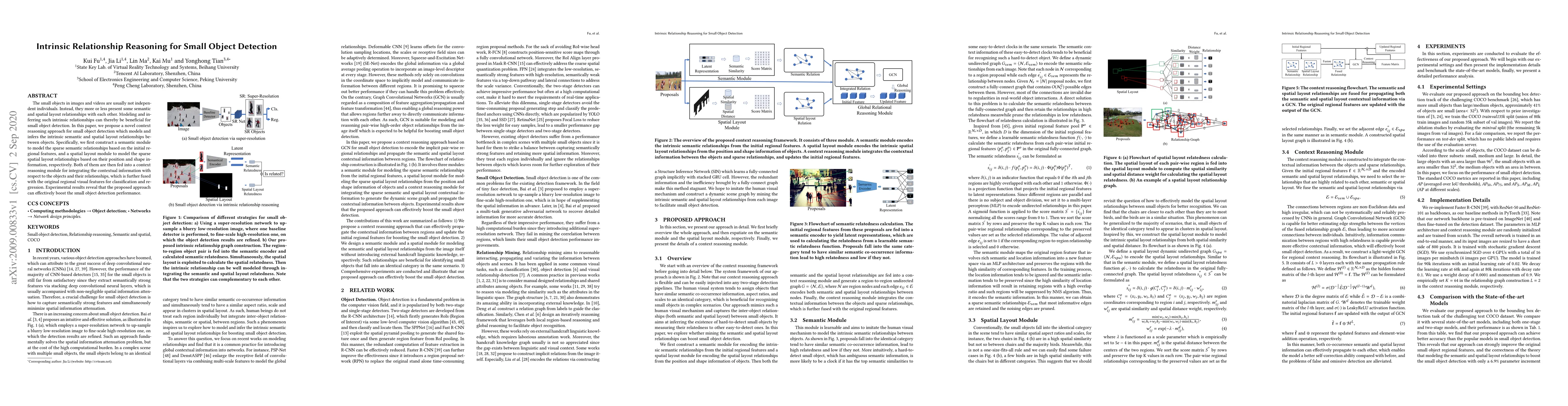 Researchers propose a novel approach for small object detection that models intrinsic semantic and spatial layout relationships between objects, improving performance.