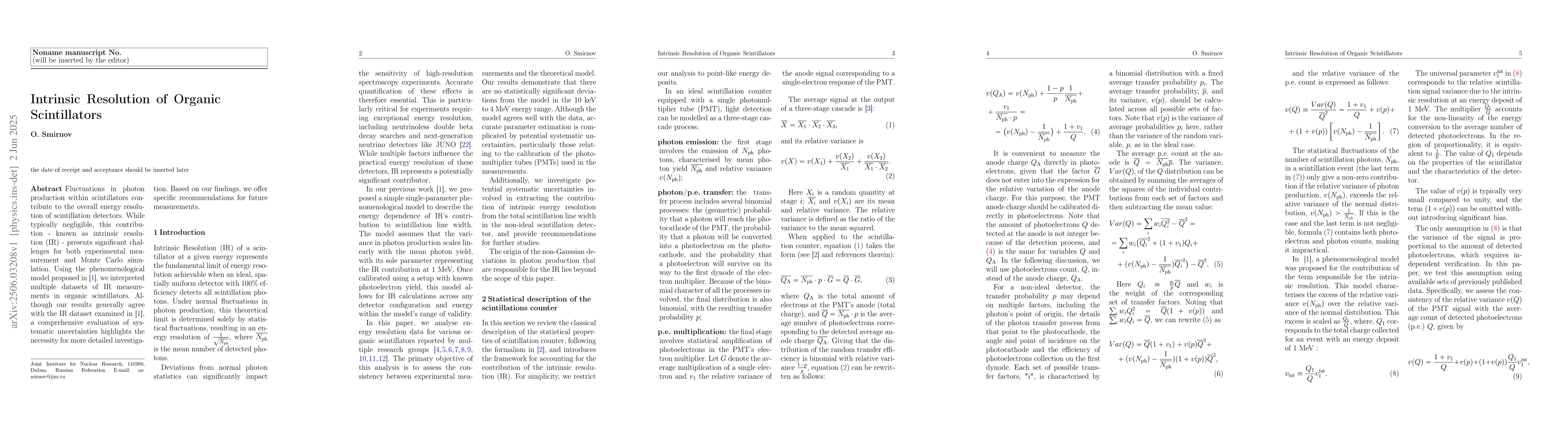 Researchers studied intrinsic resolution in organic scintillators, a phenomenon that affects energy resolution in detectors, and provided recommendations for future measurements with detailed investigation.