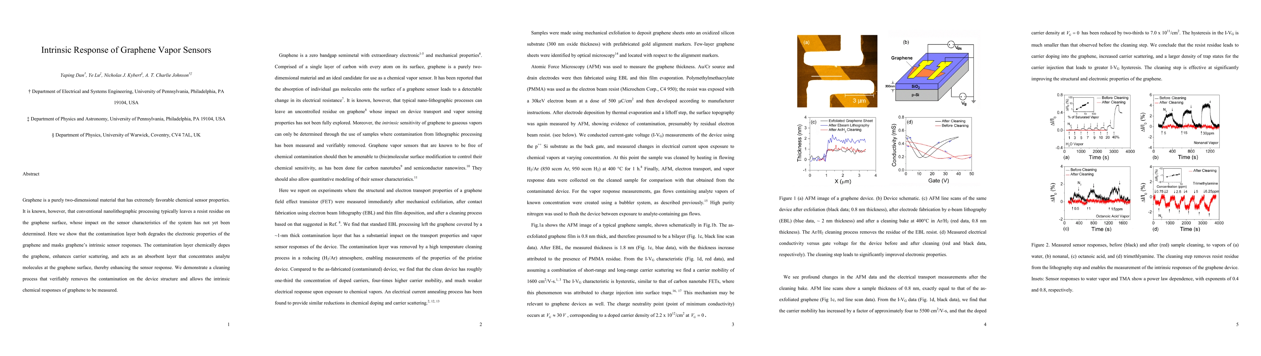 This paper investigates how resist residues from conventional nanolithography degrade graphene's electronic properties and mask its intrinsic sensor responses. A cleaning process is developed to remove the contamination, revealing graphene's true chemical sensing capabilities.