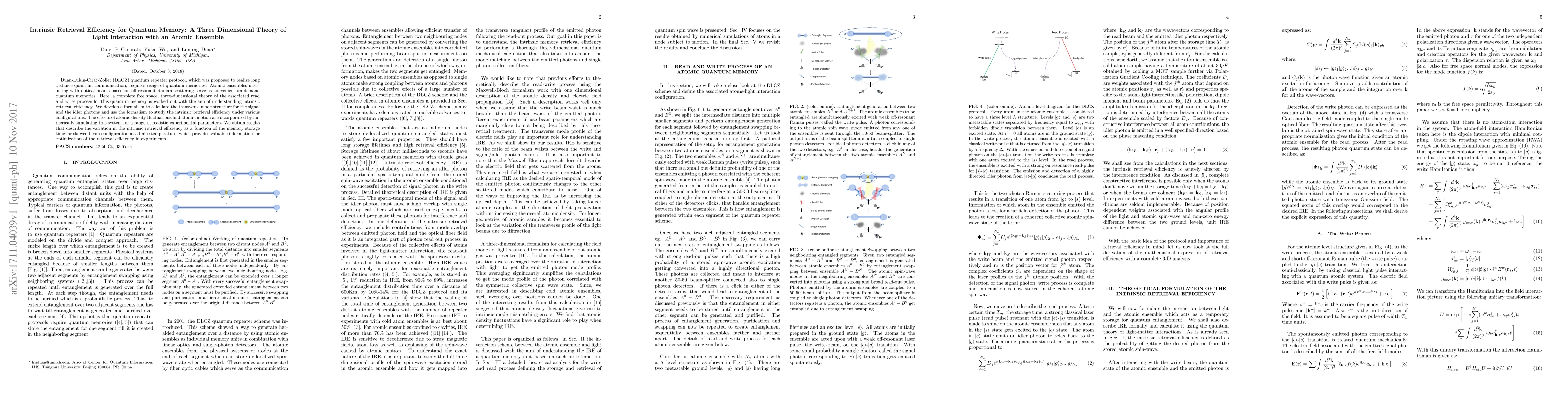 A three-dimensional theory was formulated to study the intrinsic retrievable efficiency during the write-read process for quantum repeater protocols.