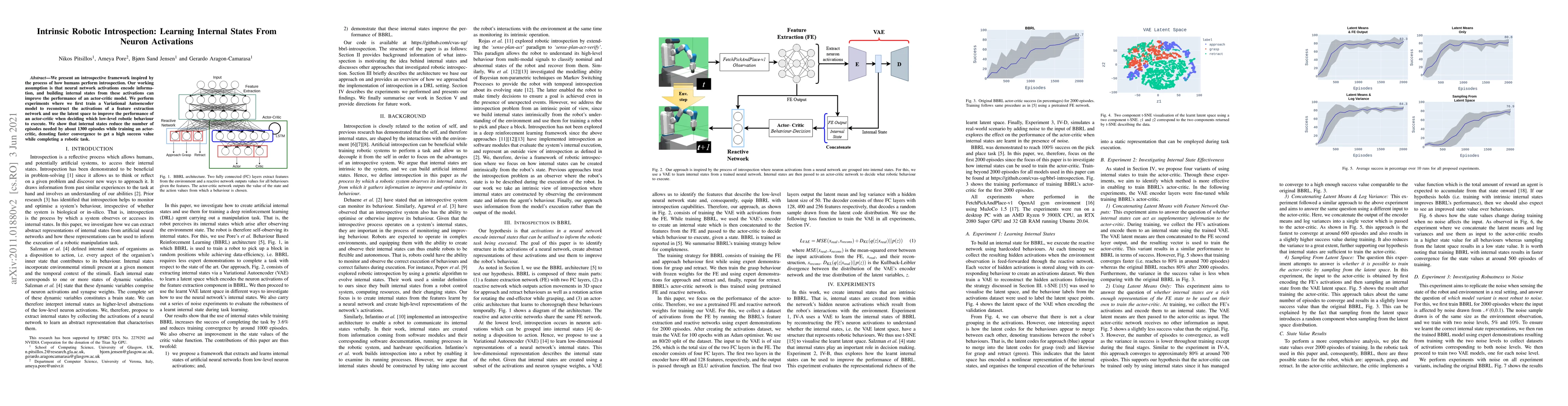 We present an introspective framework inspired by the process of how humans perform introspection. Our working assumption is that neural network activations encode information, and building internal states from these activations can improve the performance of an actor-critic model. We perform experiments where we first train a Variational Autoencoder model to reconstruct the activations of a feature extraction network and use the latent space to improve the performance of an actor-critic when deciding which low-level robotic behaviour to execute. We show that internal states reduce the number of episodes needed by about 1300 episodes while training an actor-critic, denoting faster convergence to get a high success value while completing a robotic task.