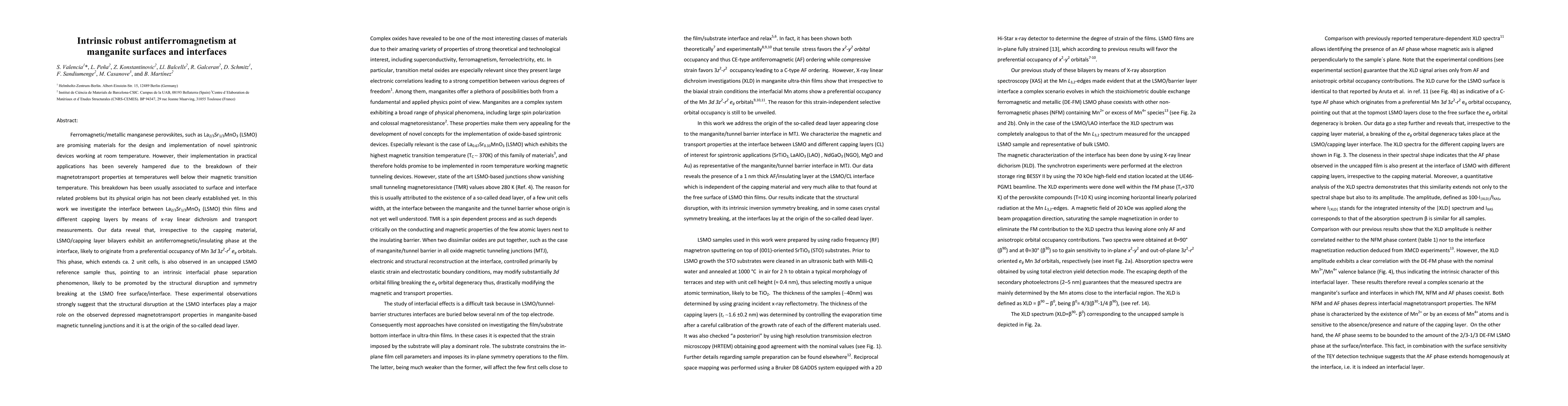 This research investigates the intrinsic magnetic properties at the interfaces of La2/3Sr1/3MnO3 thin films, revealing an intrinsic robust antiferromagnetic/insulating phase likely due to structural disruption at the surface. This interfacial phase separation is suggested to be the root cause of the depressed magnetotransport properties in manganite-based spintronic devices.