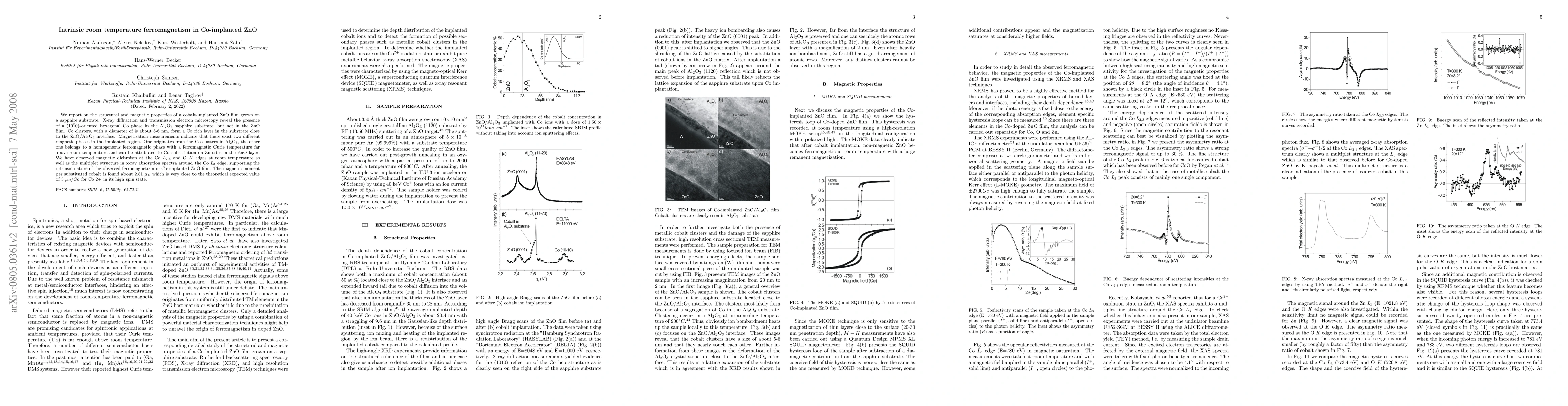 This research demonstrates intrinsic room temperature ferromagnetism in Co-implanted ZnO, which could lead to advancements in spintronics and the development of new magnetic materials.