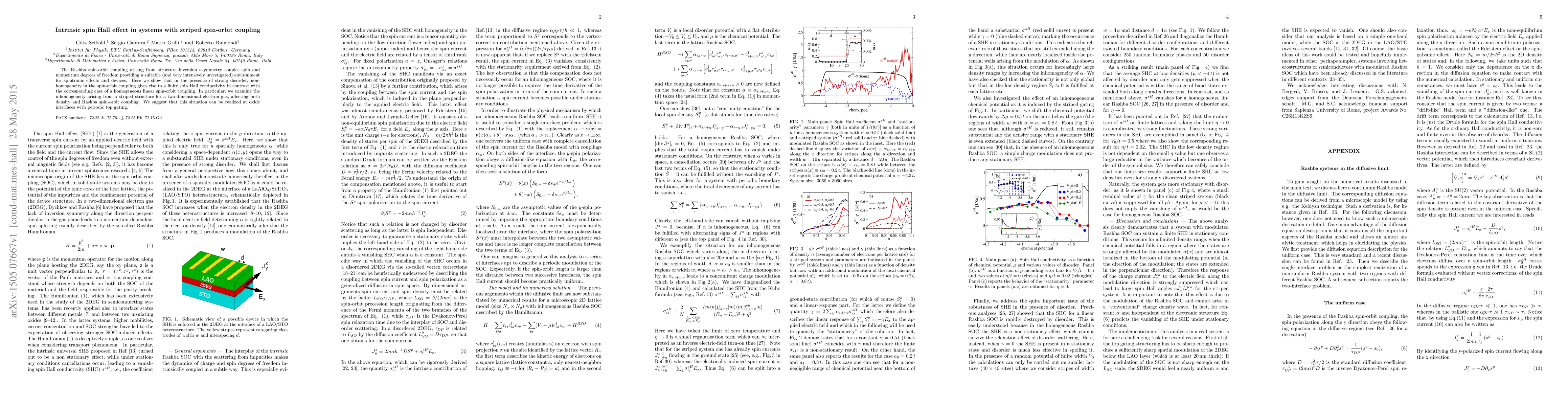 This paper demonstrates that non-homogeneous striped spin-orbit coupling in disordered systems leads to a finite spin Hall conductivity, contrasting with homogeneous coupling. The study suggests that this phenomenon can be realized at oxide interfaces with periodic top gating.