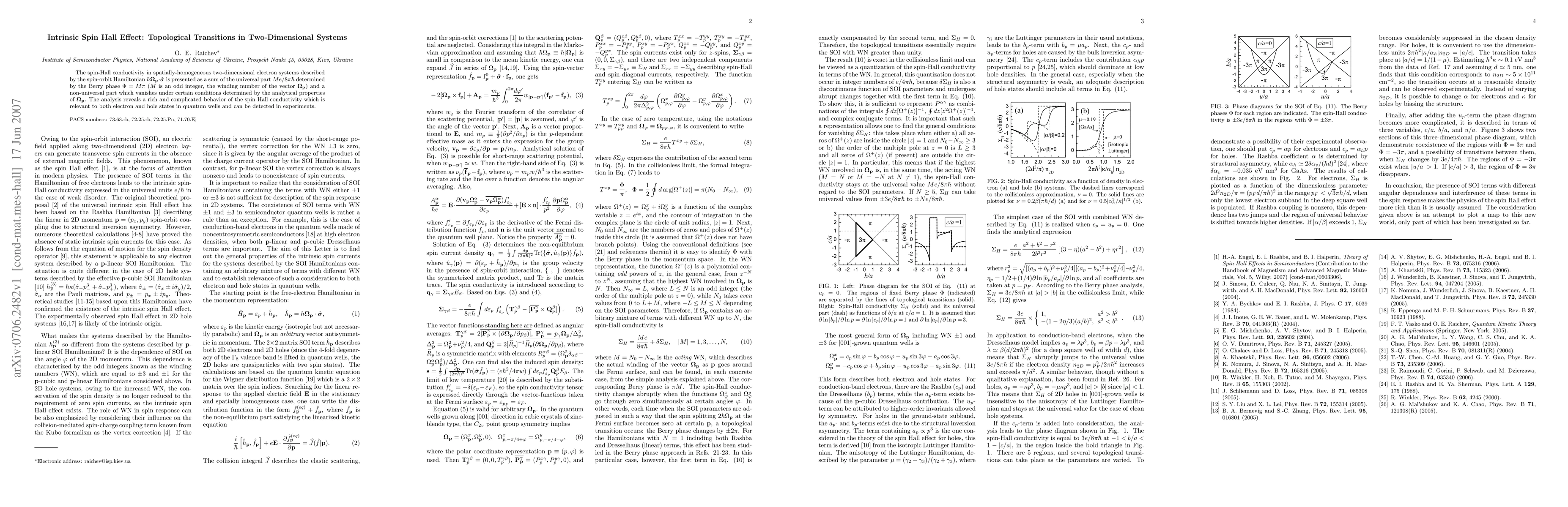 This paper investigates the intrinsic spin Hall effect in two-dimensional electron systems, showing that spin-Hall conductivity is a sum of a universal part determined by the Berry phase and a non-universal part. The findings reveal complex behavior relevant to both electron and hole states in quantum wells, with potential experimental implications.