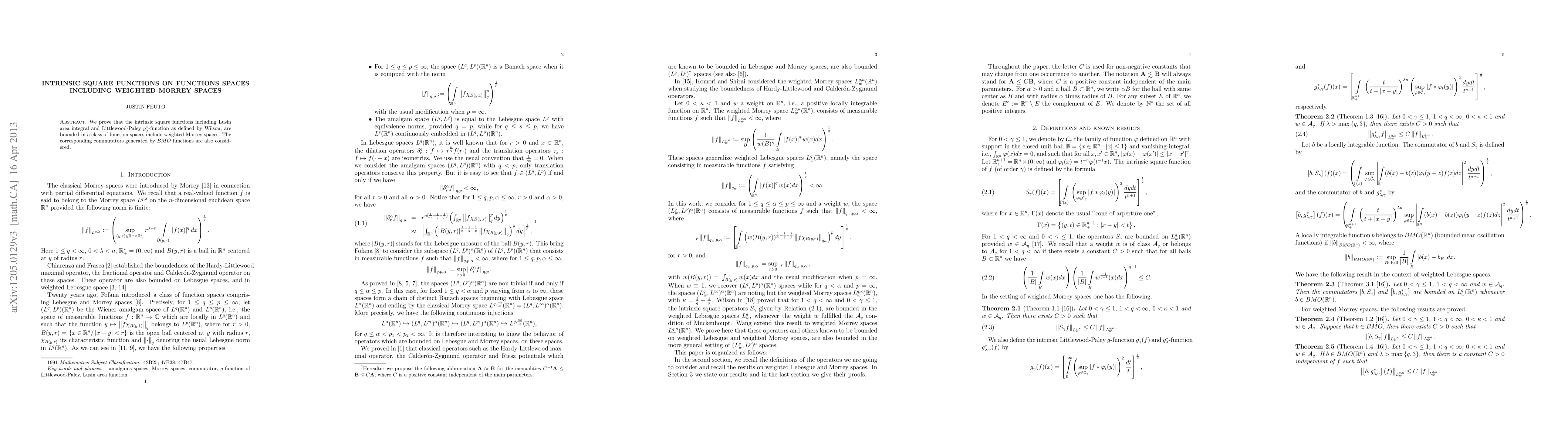 We prove that the intrinsic square functions including Lusin area integral and Littlewood-Paley $g^{\ast}_{\lambda}$-function as defined by Wilson, are bounded in a class of function spaces include weighted Morrey spaces. The corresponding commutators generated by $BMO$ functions are also considered.