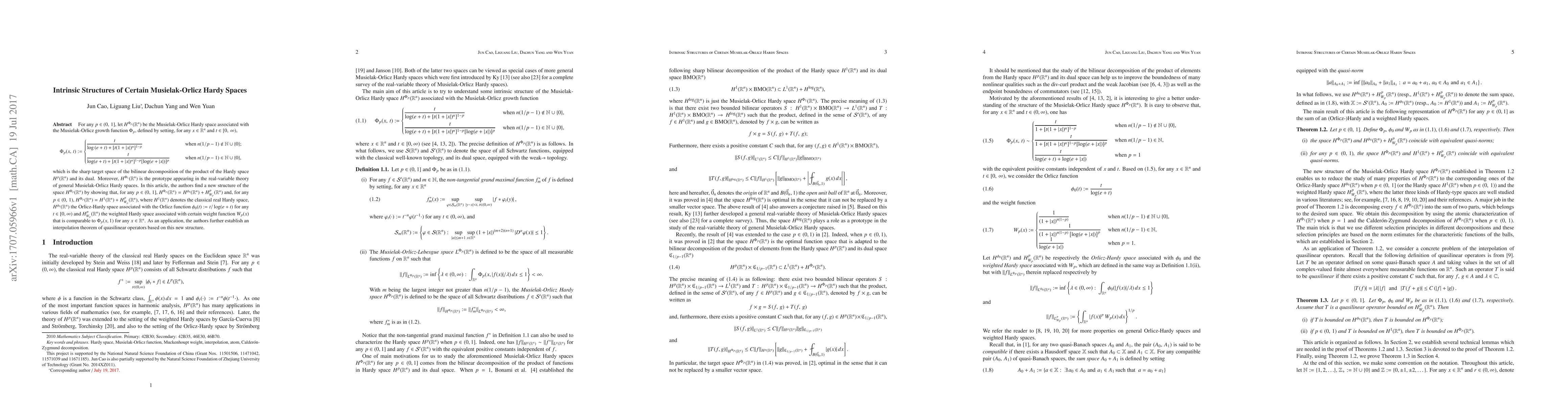 For any $p\in(0,\,1]$, let $H^{\Phi_p}(\mathbb{R}^n)$ be the Musielak-Orlicz Hardy space associated with the Musielak-Orlicz growth function $\Phi_p$, defined by setting, for any $x\in\mathbb{R}^n$ and $t\in[0,\,\infty)$, $$ \Phi_{p}(x,\,t):= \begin{cases} \frac{t}{\log(e+t)+[t(1+|x|)^n]^{1-p}} & \qquad \text{when } n(1/p-1)\notin \mathbb{N} \cup \{0\}; \\ \frac{t}{\log(e+t)+[t(1+|x|)^n]^{1-p}[\log(e+|x|)]^p} & \qquad \text{when } n(1/p-1)\in \mathbb{N}\cup\{0\},\\ \end{cases} $$ which is the sharp target space of the bilinear decomposition of the product of the Hardy space $H^p(\mathbb{R}^n)$ and its dual. Moreover, $H^{\Phi_1}(\mathbb{R}^n)$ is the prototype appearing in the real-variable theory of general Musielak-Orlicz Hardy spaces. In this article, the authors find a new structure of the space $H^{\Phi_p}(\mathbb{R}^n)$ by showing that, for any $p\in(0,\,1]$, $H^{\Phi_p}(\mathbb{R}^n)=H^{\phi_0}(\mathbb{R}^n) +H_{W_p}^p(\mathbb{R}^n)$ and, for any $p\in(0,\,1)$, $H^{\Phi_p}(\mathbb{R}^n)=H^{1}(\mathbb{R}^n) +H_{W_p}^p(\mathbb{R}^n)$, where $H^1(\mathbb{R}^n)$ denotes the classical real Hardy space, $H^{\phi_0}(\mathbb{R}^n)$ the Orlicz-Hardy space associated with the Orlicz function $\phi_0(t):=t/\log(e+t)$ for any $t\in [0,\infty)$ and $H_{W_p}^p(\mathbb{R}^n)$ the weighted Hardy space associated with certain weight function $W_p(x)$ that is comparable to $\Phi_p(x,1)$ for any $x\in\mathbb{R}^n$. As an application, the authors further establish an interpolation theorem of quasilinear operators based on this new structure.