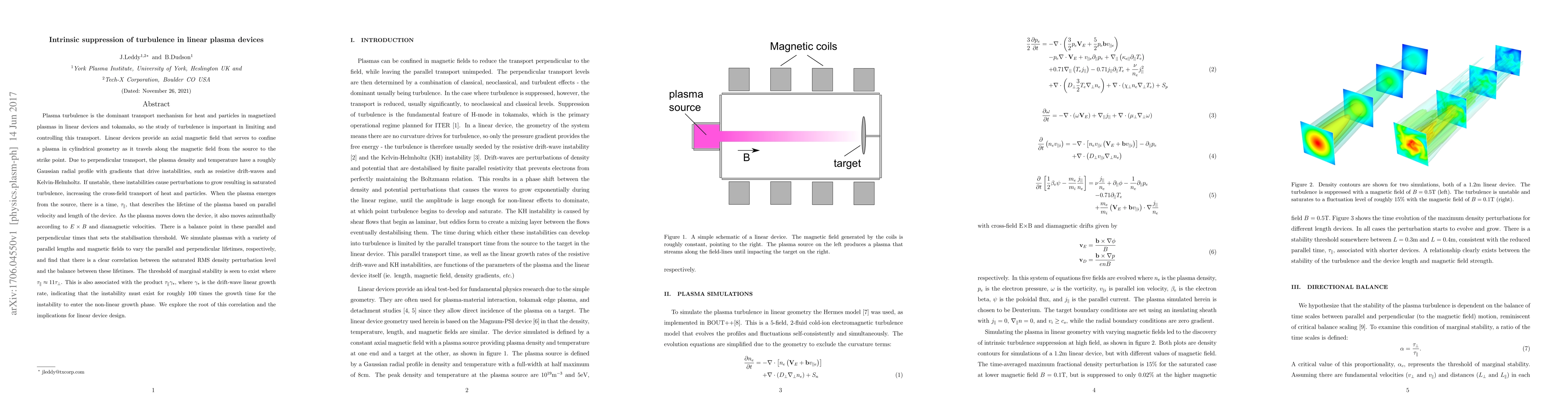 Plasma turbulence is the dominant transport mechanism for heat and particles in magnetized plasmas in linear devices and tokamaks, so the study of turbulence is important in limiting and controlling this transport. Linear devices provide an axial magnetic field that serves to confine a plasma in cylindrical geometry as it travels along the magnetic field from the source to the strike point. Due to perpendicular transport, the plasma density and temperature have a roughly Gaussian radial profile with gradients that drive instabilities, such as resistive drift-waves and Kelvin-Helmholtz. If unstable, these instabilities cause perturbations to grow resulting in saturated turbulence, increasing the cross-field transport of heat and particles. When the plasma emerges from the source, there is a time, $\tau_{\parallel}$, that describes the lifetime of the plasma based on parallel velocity and length of the device. As the plasma moves down the device, it also moves azimuthally according to $E\times B$ and diamagnetic velocities. There is a balance point in these parallel and perpendicular times that sets the stabilisation threshold. We simulate plasmas with a variety of parallel lengths and magnetic fields to vary the parallel and perpendicular lifetimes, respectively, and find that there is a clear correlation between the saturated RMS density perturbation level and the balance between these lifetimes. The threshold of marginal stability is seen to exist where $\tau_{\parallel}\approx11\tau_{\perp}$. This is also associated with the product $\tau_{\parallel}\gamma_*$, where $\gamma_*$ is the drift-wave linear growth rate, indicating that the instability must exist for roughly 100 times the growth time for the instability to enter the non-linear growth phase. We explore the root of this correlation and the implications for linear device design.