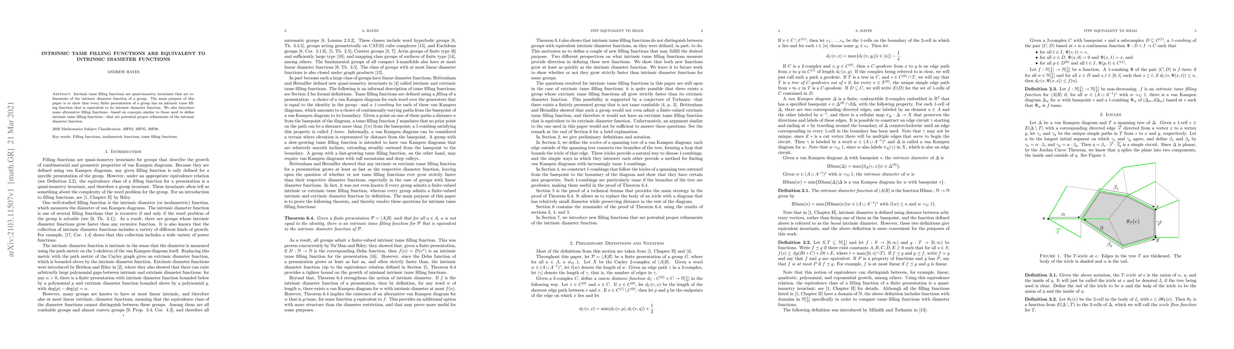 This paper demonstrates that intrinsic tame filling functions, which refine the intrinsic diameter function, are equivalent to the latter for any group with a finite presentation. It also proposes alternative filling functions that may further refine the intrinsic diameter function.