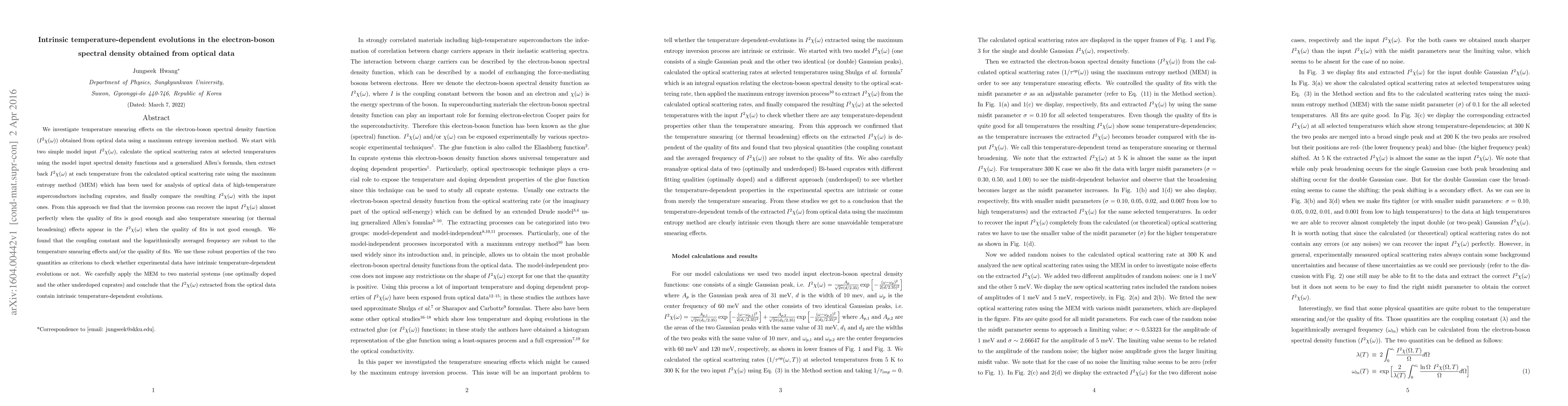 This study investigates temperature-induced changes in the electron-boson spectral density function ($I^2\chi(\omega)$) derived from optical data using a maximum entropy inversion method. The research finds that while the inversion method can accurately recover the input spectral density, temperature smearing effects reveal intrinsic temperature-dependent evolutions in the $I^2\chi(\omega)$ of cuprate materials.