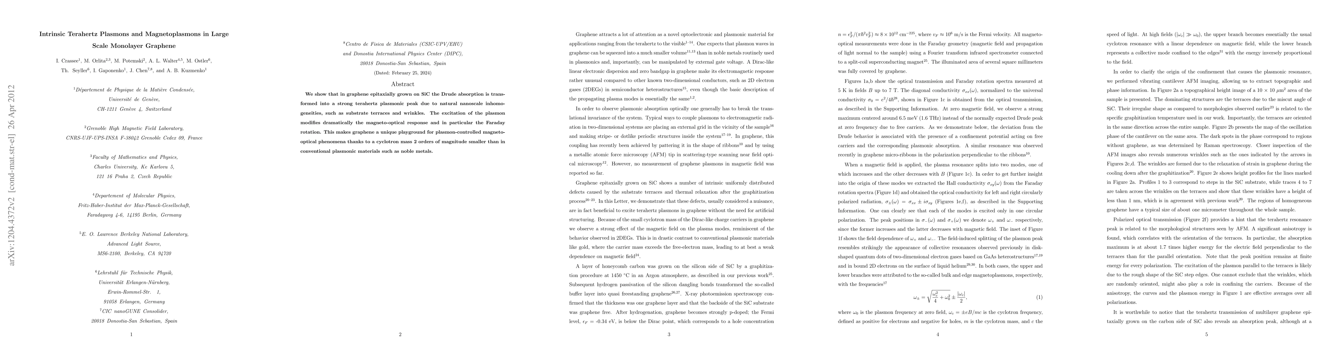 This paper demonstrates that intrinsic nanoscale inhomogeneities in graphene epitaxially grown on SiC lead to a strong terahertz plasmonic peak, significantly altering its magneto-optical response, including Faraday rotation, due to a much smaller cyclotron mass compared to conventional plasmonic materials.