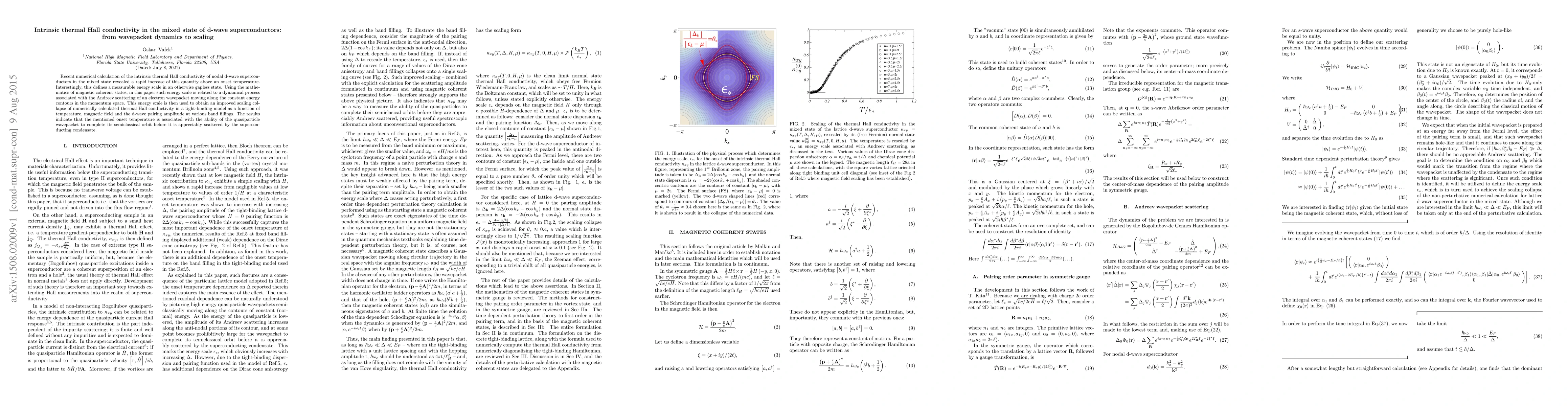 This paper investigates the intrinsic thermal Hall conductivity in nodal d-wave superconductors, revealing a rapid increase above a certain temperature. It connects this energy scale to the dynamics of Andreev scattering and wavepacket motion, leading to a better scaling collapse of numerical results across various parameters.