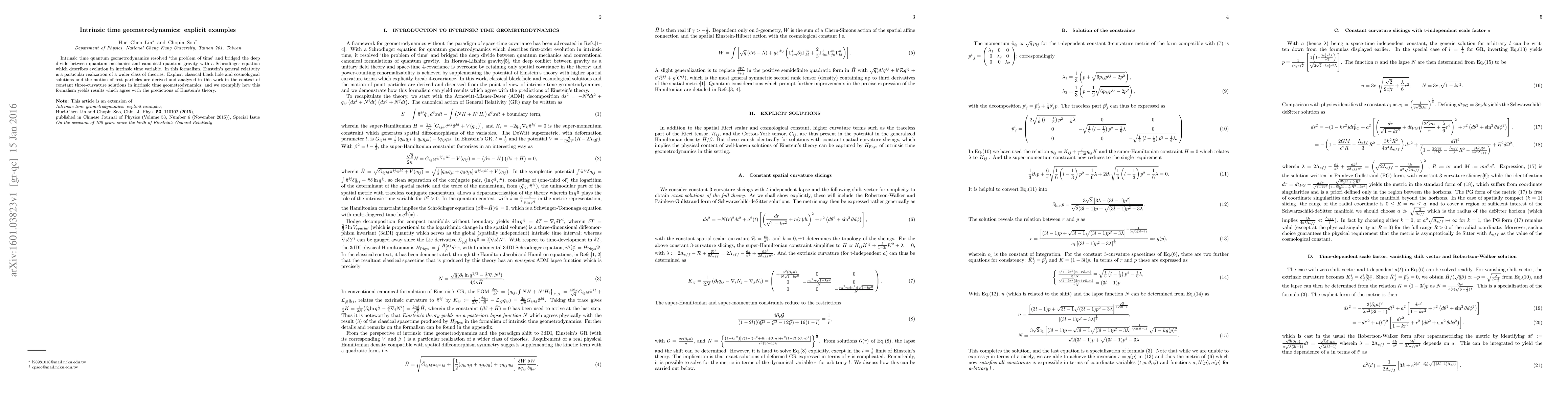 This paper presents intrinsic time quantum geometrodynamics, resolving the "problem of time" and bridging quantum mechanics and canonical quantum gravity. It derives explicit classical solutions, including black holes and cosmological models, demonstrating agreement with Einstein's general relativity predictions.