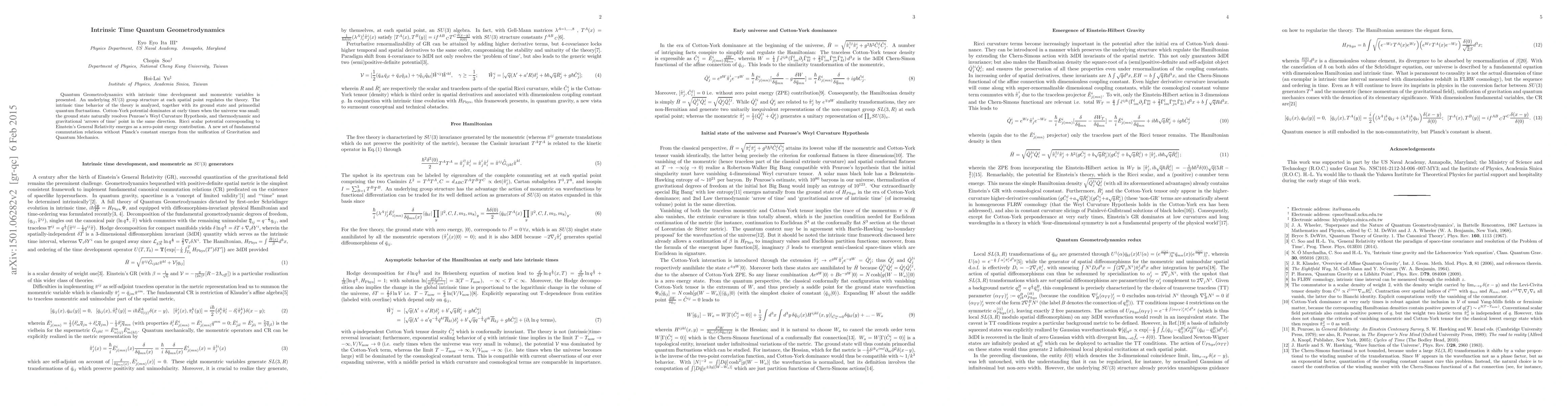 This paper introduces Quantum Geometrodynamics with intrinsic time and momentric variables, underpinned by an SU(3) group structure. It explores the theory's early-time dynamics, ground state, and primordial quantum fluctuations, revealing a Cotton-York potential dominance and a resolution of Penrose's Weyl Curvature Hypothesis.