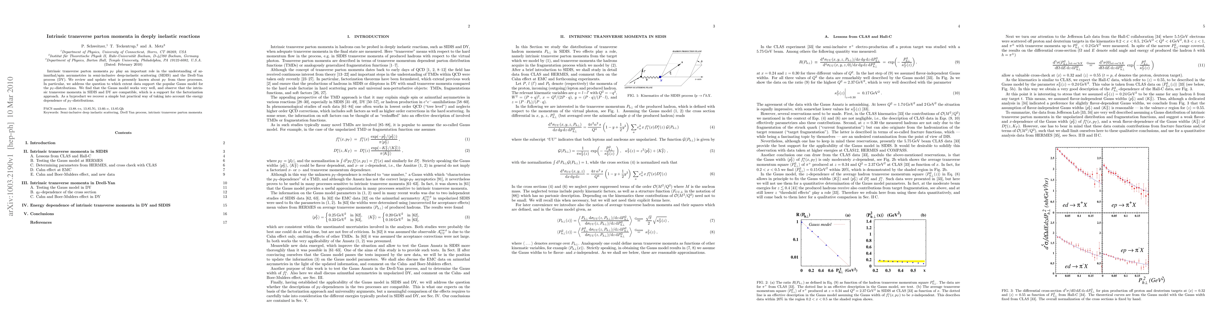 The research examines intrinsic transverse parton momenta (pT) in deep-inelastic reactions, finding that the Gauss model accurately describes pT-distributions in semi-inclusive deep-inelastic scattering (SIDIS) and Drell-Yan process (DY). Compatibility of pT in SIDIS and DY supports the factorization approach, with a practical method for incorporating energy dependence of pT-distributions discovered.