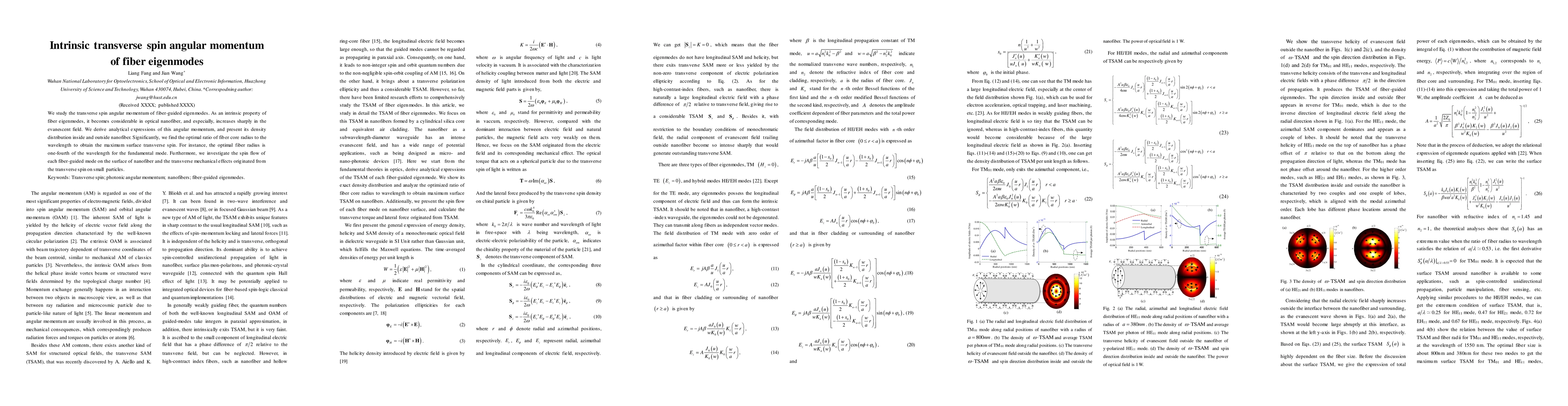 This paper investigates the intrinsic transverse spin angular momentum of fiber eigenmodes, deriving analytical expressions and analyzing its density distribution. It identifies the optimal fiber core radius to maximize surface transverse spin, particularly in optical nanofibers, and explores the resulting spin flow and mechanical effects on small particles.