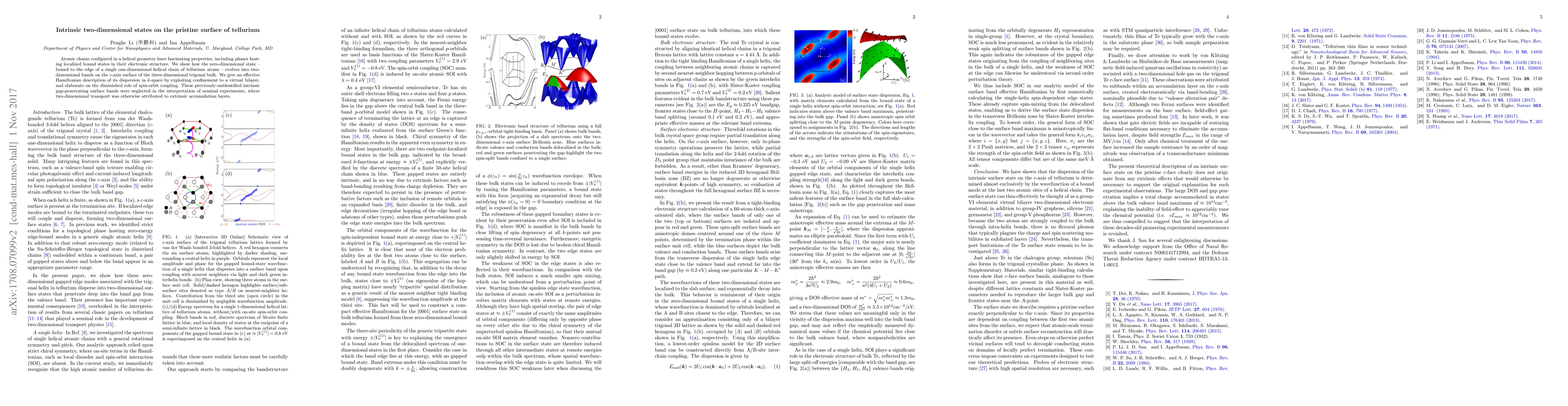 Using a tight-binding description, we show how the zero-dimensional state bound to the edge of a single one-dimensional helical chain of tellurium atoms evolves into two-dimensional states on the c-axis surface of the three-dimensional trigonal bulk. We give an effective Hamiltonian description of its dispersion in k-space by exploiting confinement to a virtual bilayer, and elaborate on the diminished role of spin-orbit coupling. These previously-unidentified intrinsic gap-penetrating surface bands were neglected in the interpretation of seminal experiments, where two-dimensional transport was otherwise attributed to extrinsic accumulation layers.