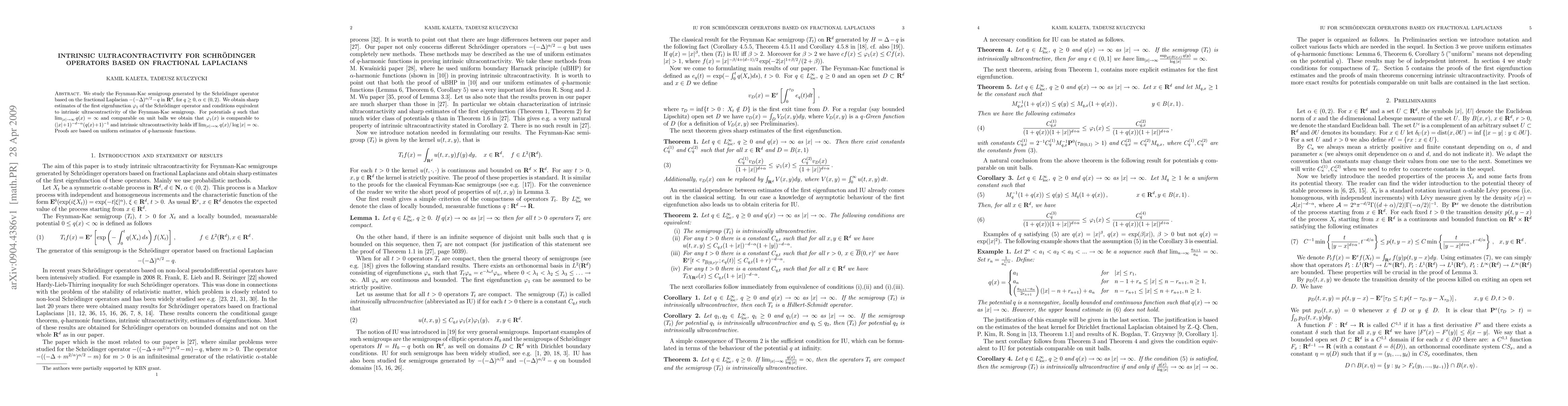 This paper investigates the Feynman-Kac semigroup for Schrödinger operators based on fractional Laplacians, deriving sharp estimates for the first eigenfunction and conditions for intrinsic ultracontractivity, showing that it holds under certain potential growth conditions.