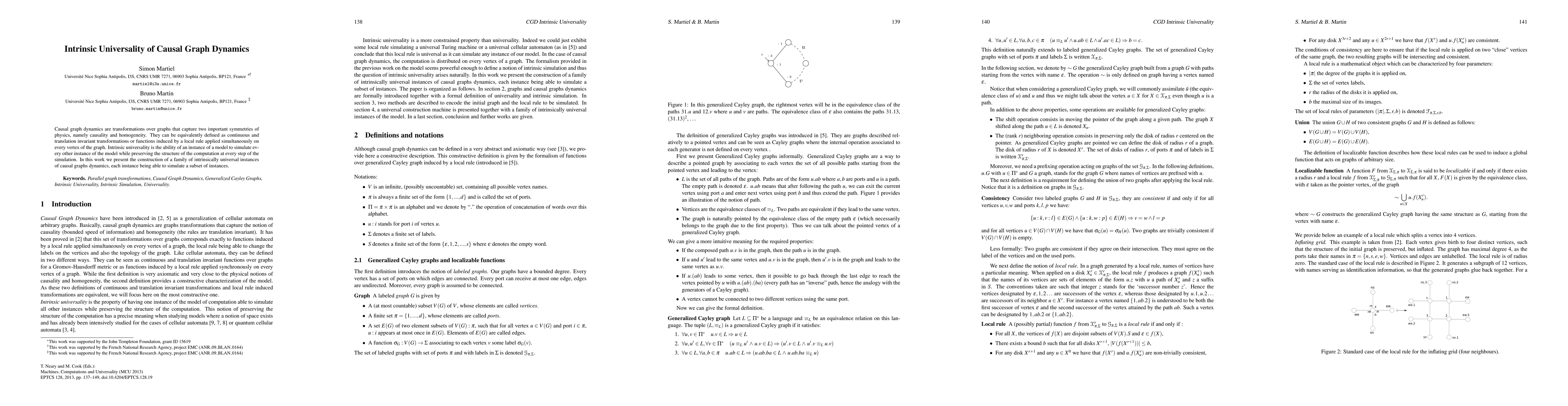 This paper constructs intrinsically universal causal graph dynamics, capable of simulating any other instance of the model while preserving computational structure, highlighting their potential for broad applicability in physics simulations.