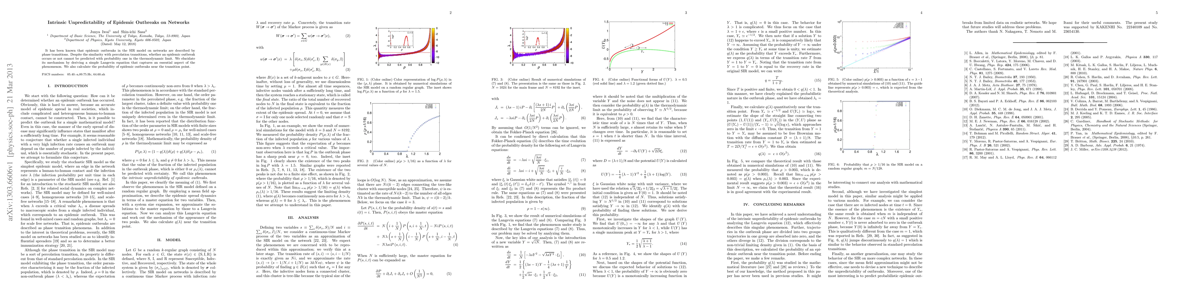 This paper explores the intrinsic unpredictability of epidemic outbreaks in SIR model networks, demonstrating that despite similarities to percolation transitions, outcomes cannot be predicted with certainty. It derives a Langevin equation to describe the phenomenon and calculates outbreak probabilities near the transition point.