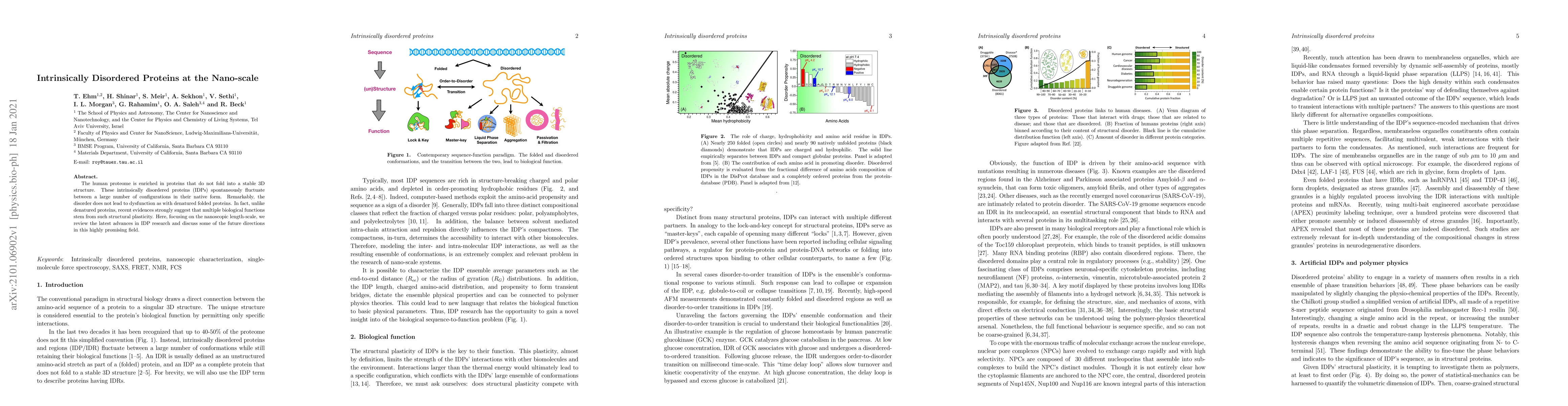 This paper reviews recent advances in understanding intrinsically disordered proteins (IDPs) at the nano-scale, highlighting their structural plasticity and multiple biological functions, and suggests future research directions in this promising field.