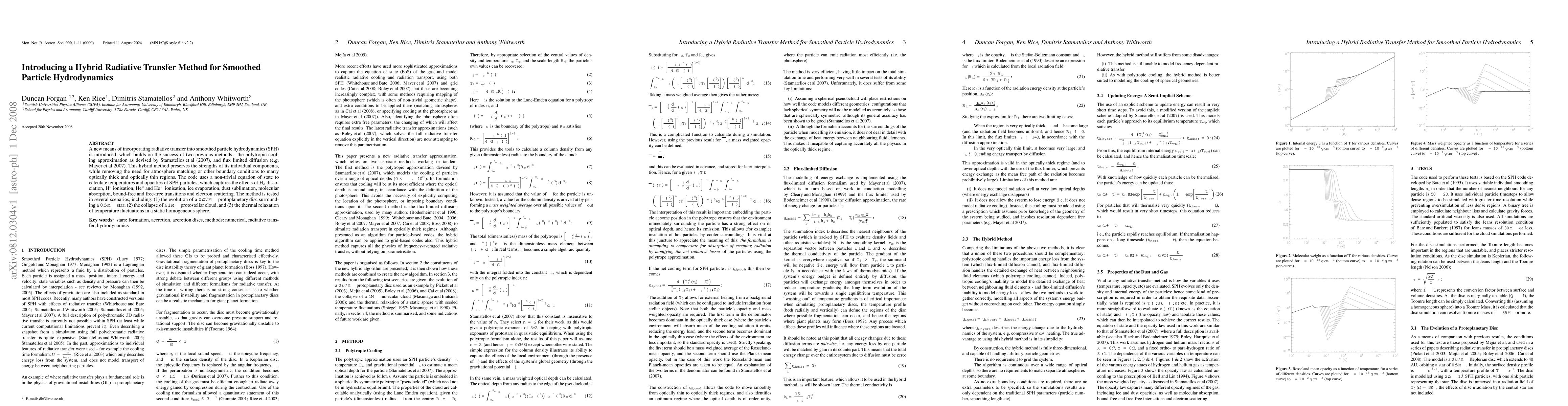 This paper introduces a hybrid method for radiative transfer in smoothed particle hydrodynamics (SPH) that integrates strengths from polytropic cooling and flux limited diffusion, eliminating the need for boundary conditions. The method calculates temperatures and opacities considering various physical processes and is tested in scenarios like protoplanetary disc evolution and protostellar cloud collapse.