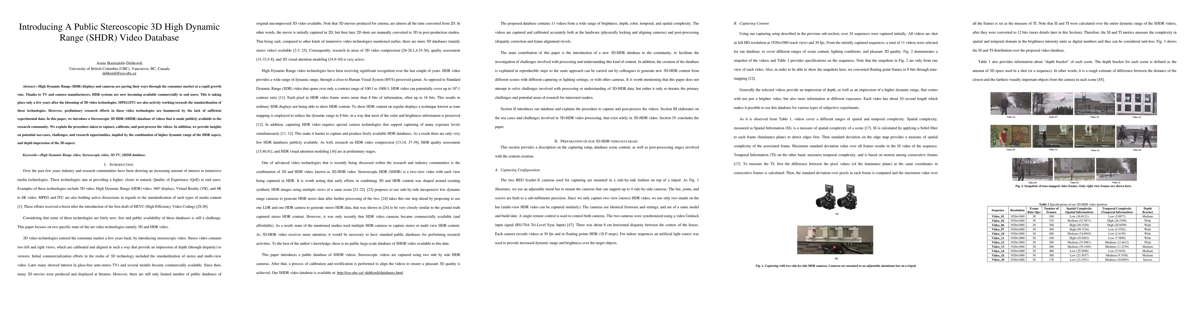 High Dynamic Range (HDR) displays and cameras are paving their ways through the consumer market at a rapid growth rate. Thanks to TV and camera manufacturers, HDR systems are now becoming available commercially to end users. This is taking place only a few years after the blooming of 3D video technologies. MPEG/ITU are also actively working towards the standardization of these technologies. However, preliminary research efforts in these video technologies are hammered by the lack of sufficient experimental data. In this paper, we introduce a Stereoscopic 3D HDR (SHDR) database of videos that is made publicly available to the research community. We explain the procedure taken to capture, calibrate, and post-process the videos. In addition, we provide insights on potential use-cases, challenges, and research opportunities, implied by the combination of higher dynamic range of the HDR aspect, and depth impression of the 3D aspect.