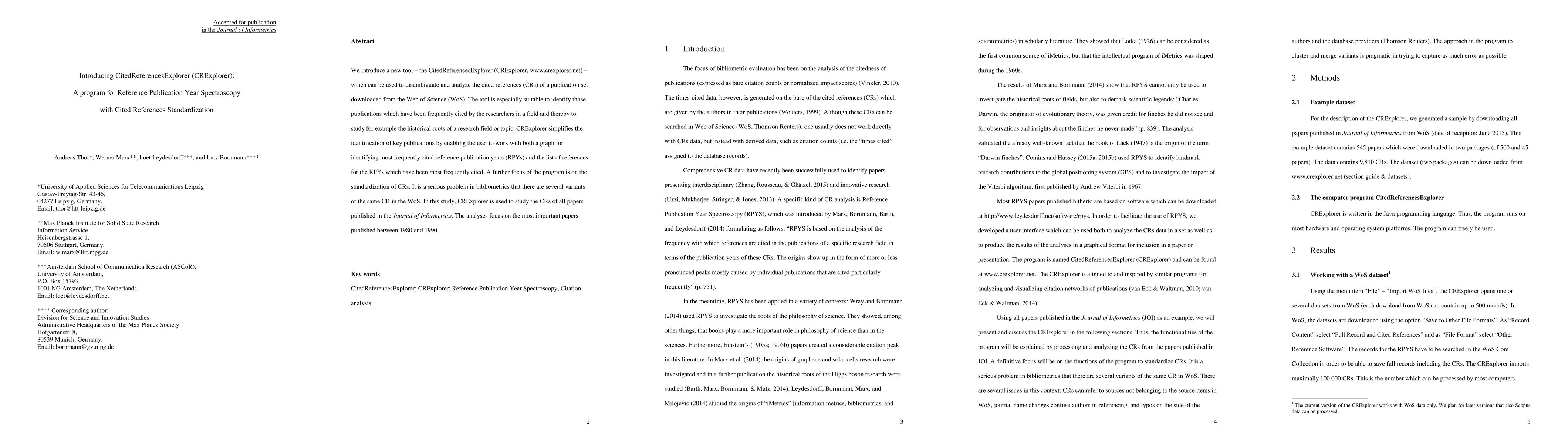 The paper introduces the CitedReferencesExplorer (CRExplorer), a tool for disambiguating and analyzing cited references in publications from the Web of Science, aiding in identifying frequently cited publications and standardizing reference variants. The tool is demonstrated through an analysis of the Journal of Informetrics' most important papers from 1980 to 1990.