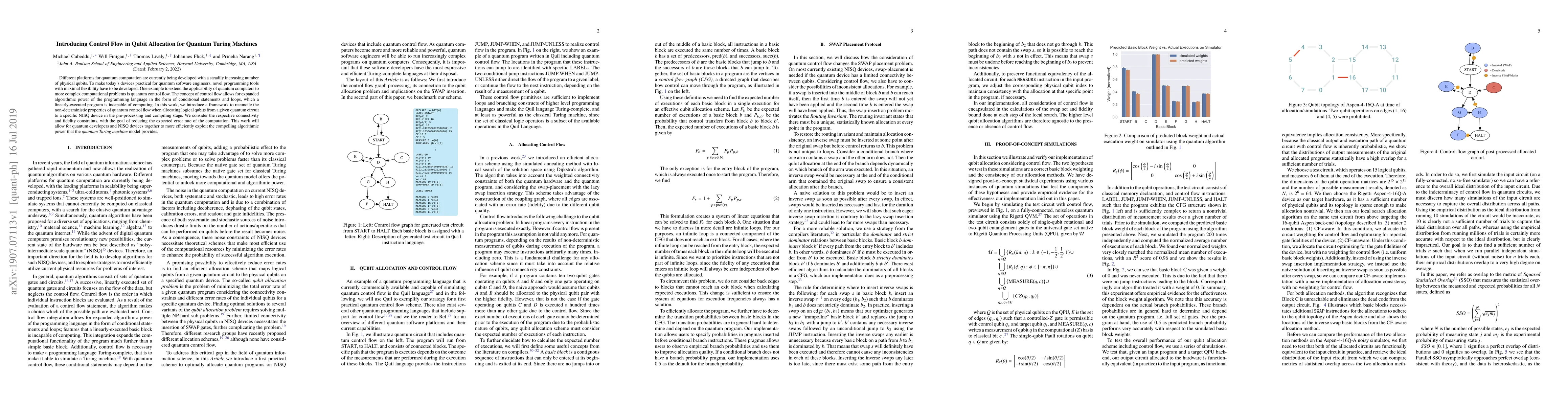 Different platforms for quantum computation are currently being developed with a steadily increasing number of physical qubits. To make today's devices practical for quantum software engineers, novel programming tools with maximal flexibility have to be developed. One example to extend the applicability of quantum computers to more complex computational problems is quantum control flow. The concept of control flow allows for expanded algorithmic power of the programming language in the form of conditional statements and loops, which a linearly-executed program is incapable of computing. In this work, we introduce a framework to reconcile the non-deterministic properties of quantum control flow when allocating logical qubits from a given quantum circuit to a specific NISQ device in the pre-processing and compiling stage. We consider the respective connectivity and fidelity constraints, with the goal of reducing the expected error rate of the computation. This work will allow for quantum developers and NISQ devices together to more efficiently exploit the compelling algorithmic power that the quantum Turing machine model provides.