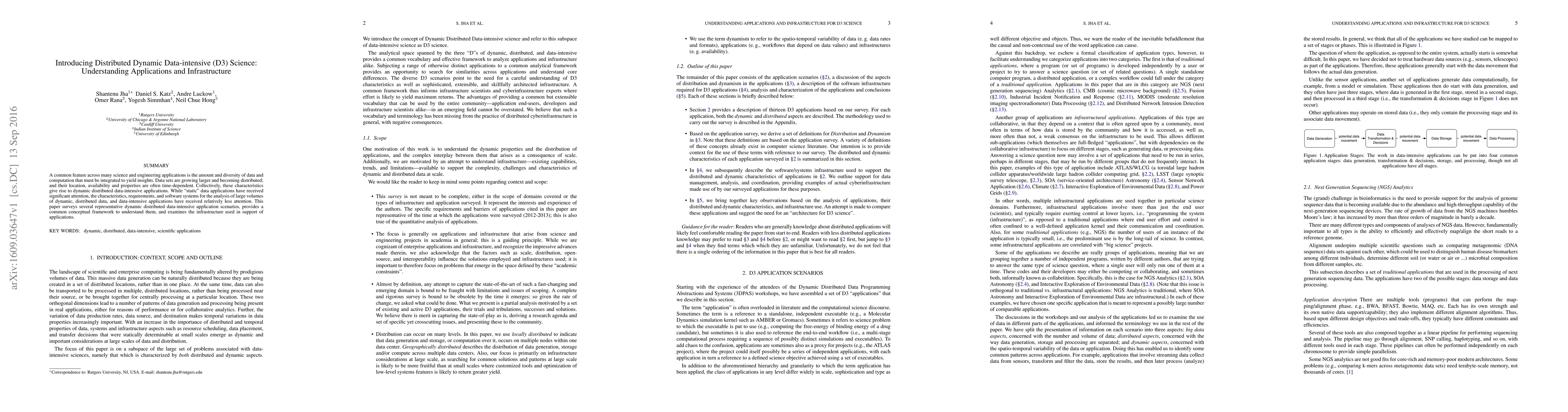 A common feature across many science and engineering applications is the amount and diversity of data and computation that must be integrated to yield insights. Data sets are growing larger and becoming distributed; and their location, availability and properties are often time-dependent. Collectively, these characteristics give rise to dynamic distributed data-intensive applications. While "static" data applications have received significant attention, the characteristics, requirements, and software systems for the analysis of large volumes of dynamic, distributed data, and data-intensive applications have received relatively less attention. This paper surveys several representative dynamic distributed data-intensive application scenarios, provides a common conceptual framework to understand them, and examines the infrastructure used in support of applications.