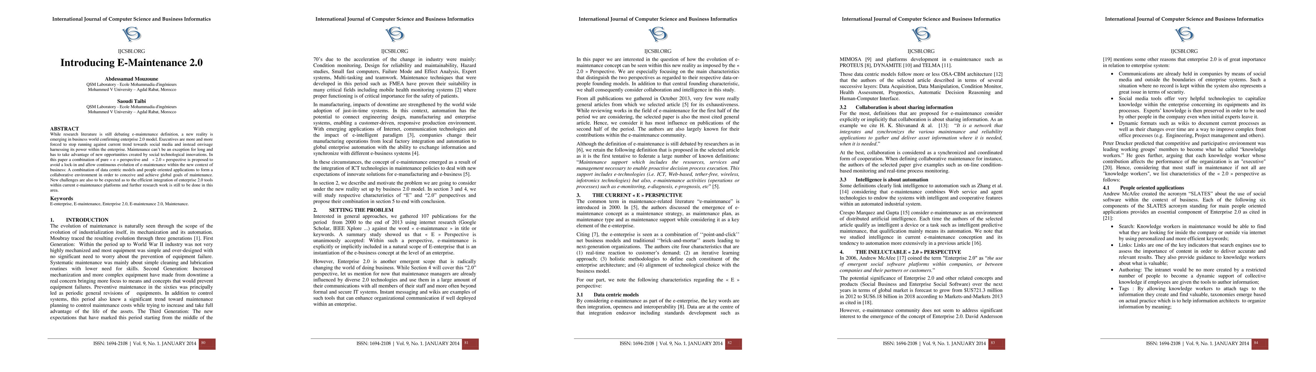 Researchers propose a new approach to e-maintenance that combines data-centric models with people-oriented applications to create a collaborative environment for maintenance, embracing the opportunities of enterprise 2.0 tools.