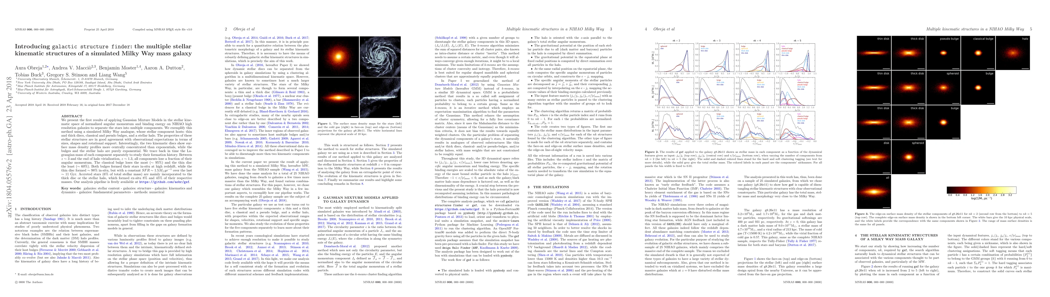 We present the first results of applying Gaussian Mixture Models in the stellar kinematic space of normalized angular momentum and binding energy on NIHAO high resolution galaxies to separate the stars into multiple components. We exemplify this method using a simulated Milky Way analogue, whose stellar component hosts: thin and thick discs, classical and pseudo bulges, and a stellar halo. The properties of these stellar structures are in good agreement with observational expectations in terms of sizes, shapes and rotational support. Interestingly, the two kinematic discs show surface mass density profiles more centrally concentrated than exponentials, while the bulges and the stellar halo are purely exponential. We trace back in time the Lagrangian mass of each component separately to study their formation history. Between z~3 and the end of halo virialization, z~1.3, all components lose a fraction of their angular momentum. The classical bulge loses the most (~95%) and the thin disc the least (~60%). Both bulges formed their stars in-situ at high redshift, while the thin disc formed ~98% in-situ, but with a constant SFR~1.5M$_{\rm\odot}$/yr$^{\rm-1}$ over the last ~11 Gyr. Accreted stars (6% of total stellar mass) are mainly incorporated to the thick disc or the stellar halo, which formed ex-situ 8% and 45% of their respective masses. Our analysis pipeline is freely available at https://github.com/aobr/gsf.
